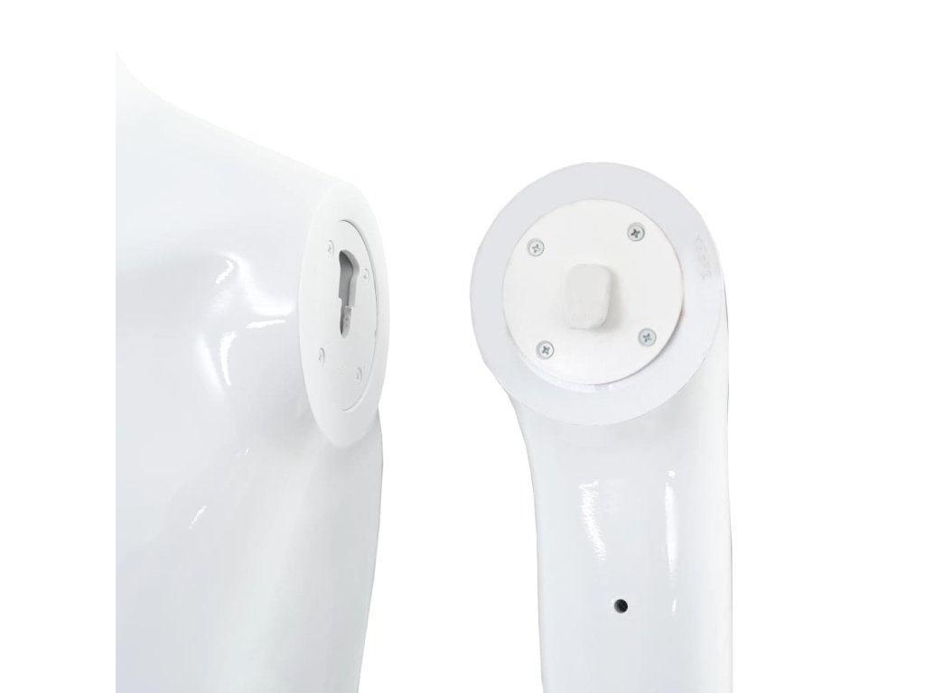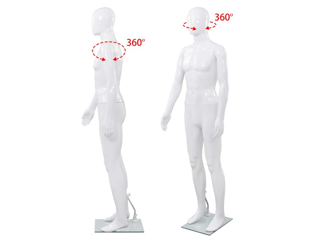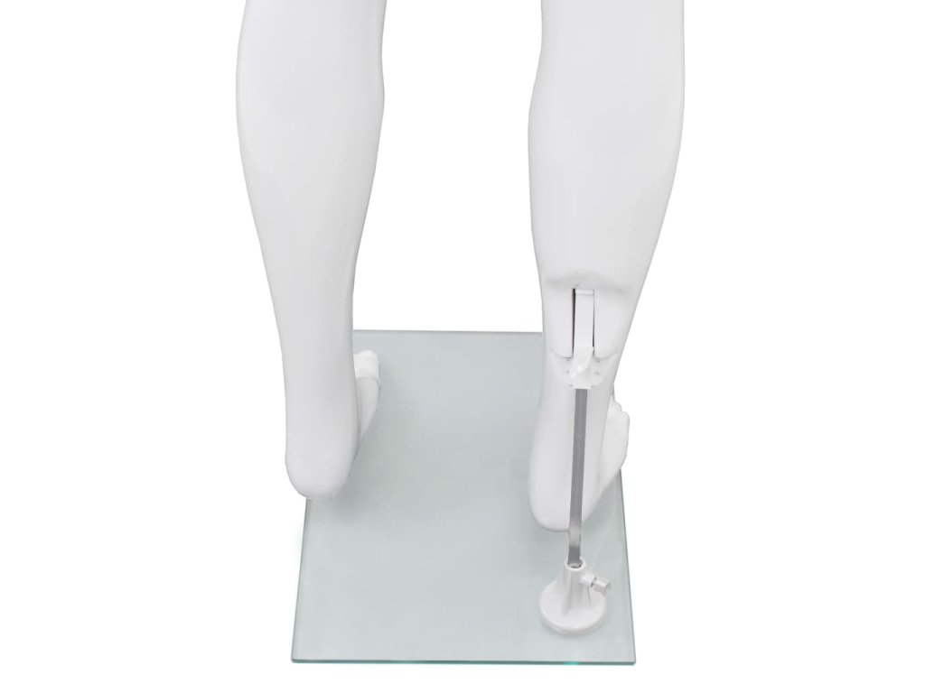 Figurína sa skladá z 5 častí: hlava, trup, nohy, ľavá ruka a pravá ruka. Hlava a ramená sa dajú otáčať o 360°, vďaka čomu môžete figurínu upraviť do rôznych polôh. Celé telo je vyrobené z polypropylénu, ktorý je ľahký a trvácny. Sklenený podstavec s hliníkovým stojanom zabezpečuje stabilitu a umožňuje vystavovať na figuríne aj obuv.