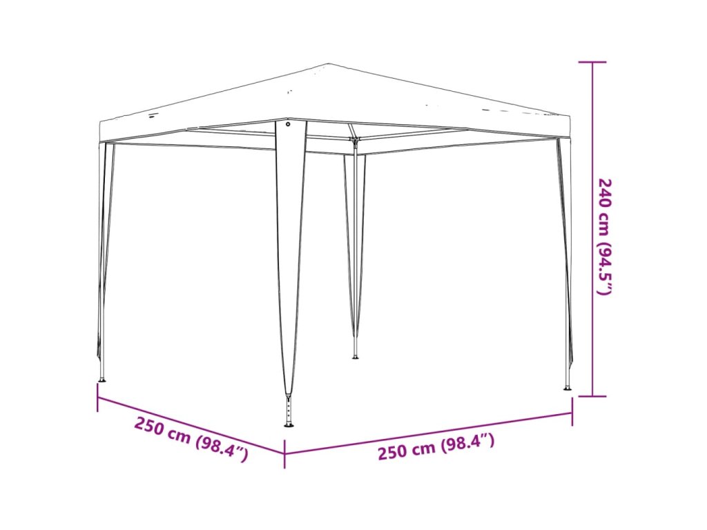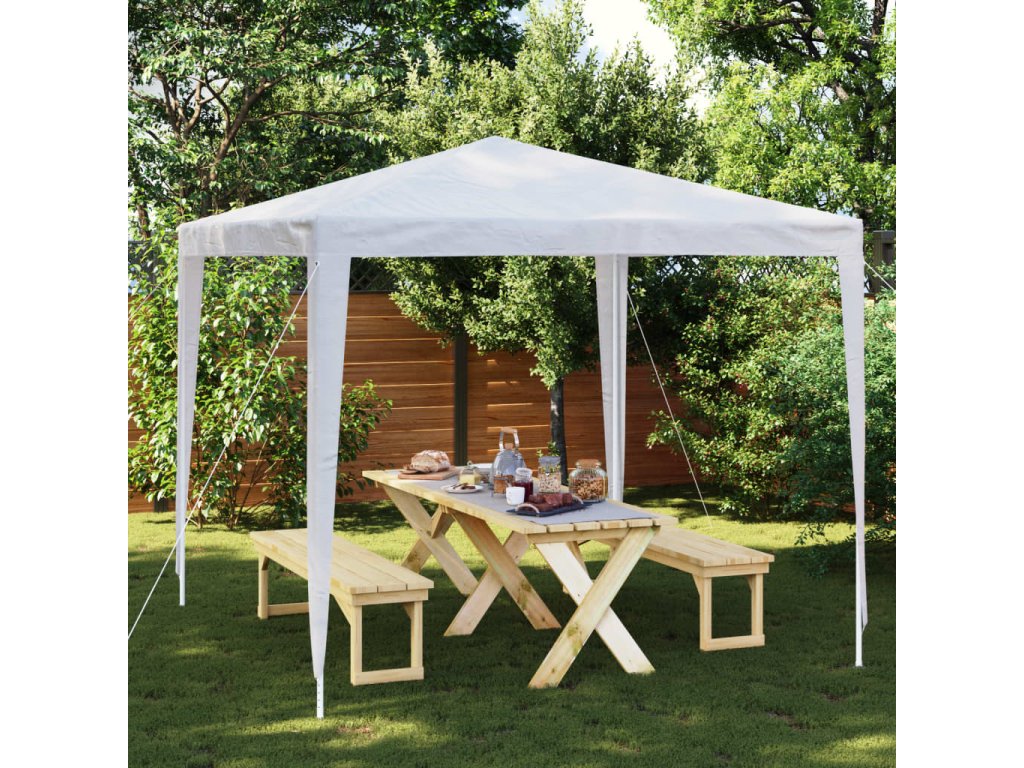 Párty stan je vyrobený z polyetylénového materiálu, ktorý je vodovzdorný a odolný voči UV žiareniu, a preto je naozaj vhodný do exteriéru. Rám je vyhotovený z odolného železa, vďaka čomu je vonkajší prístrešok veľmi stabilný a trvácny. Záhradný altánok sa jednoducho montuje.