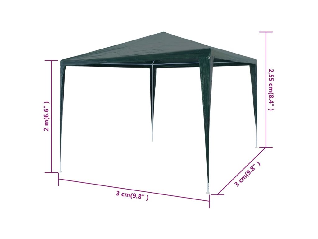 Párty stan je vyrobený z polyetylénového materiálu, ktorý je vodovzdorný a odolný voči UV žiareniu, a preto je naozaj vhodný do exteriéru. Rám je vyhotovený z ocele odolnej voči hrdzi, vďaka čomu je vonkajší prístrešok veľmi stabilný a trvácny. Záhradný altánok sa jednoducho montuje.