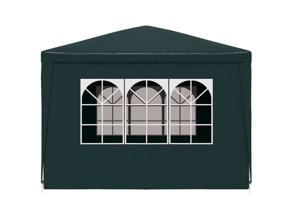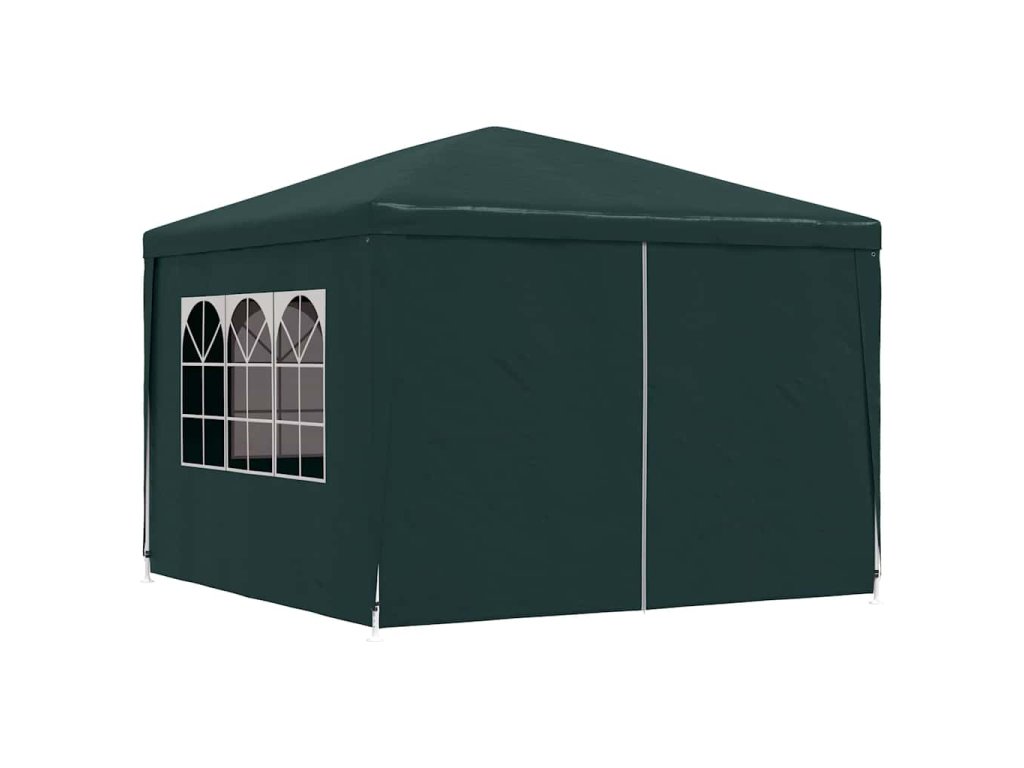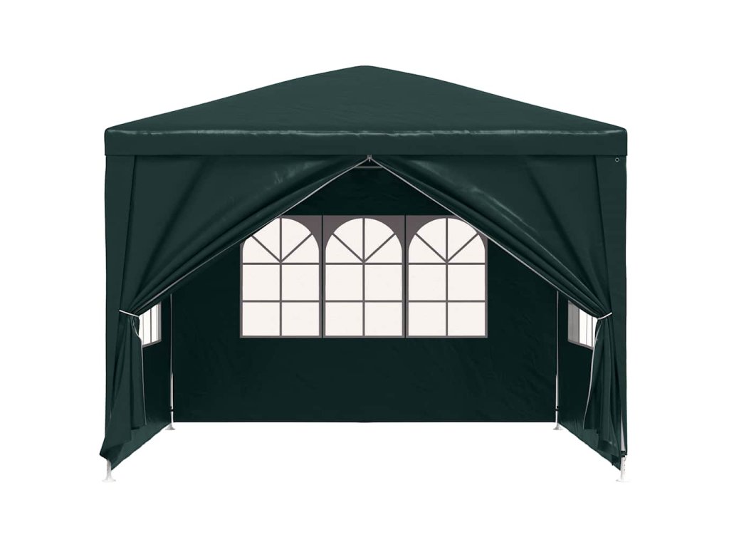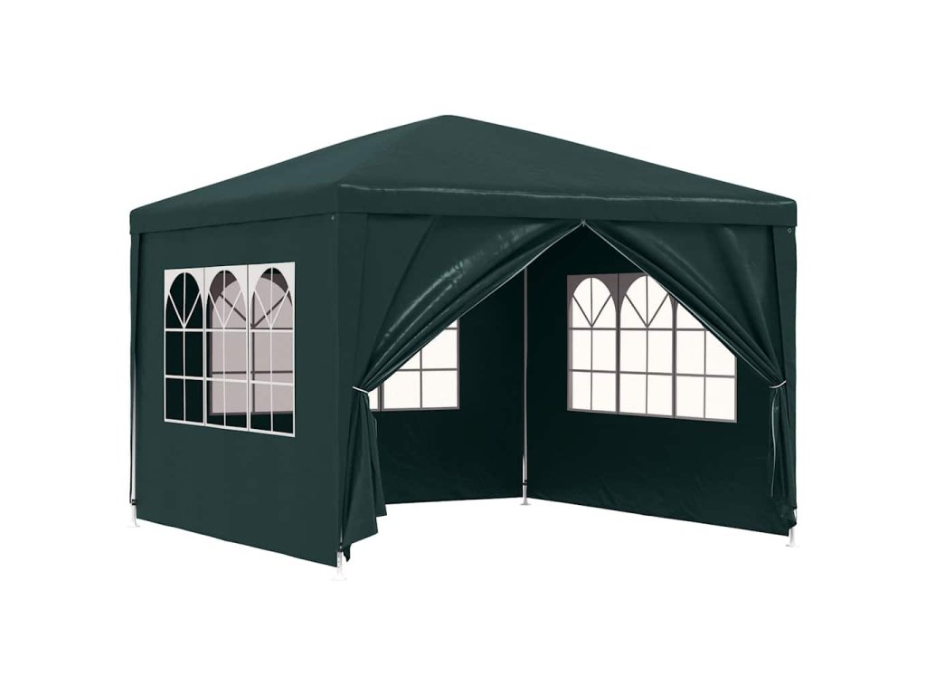 Záhradný stan je vyrobený z polyetylénového materiálu, ktorý je vodovzdorný a odolný voči UV žiareniu, a preto je naozaj vhodný do exteriéru. Rám je vyhotovený z ocele odolnej voči hrdzi, vďaka čomu je vonkajší prístrešok veľmi stabilný a trvácny. Párty stan má bočné panely, pričom na každom z nich sa nachádzajú dekoratívne okienka, a 1 panel s dvierkami na zips, ktorý umožňuje jednoduchý prístup dovnútra. Záhradný altánok sa jednoducho montuje.