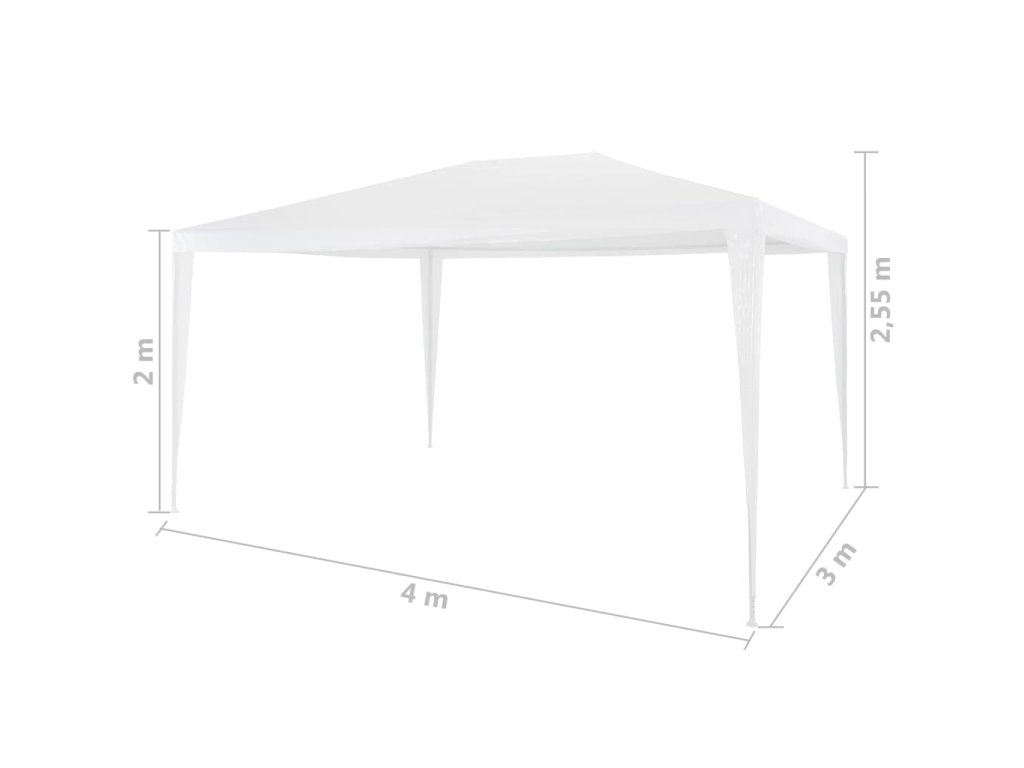 Párty stan je vyrobený z polyetylénového materiálu, ktorý je vodovzdorný a odolný voči UV žiareniu, a preto je naozaj vhodný do exteriéru. Rám je vyhotovený z ocele odolnej voči hrdzi, vďaka čomu je vonkajší prístrešok veľmi stabilný a trvácny. Záhradný altánok sa jednoducho montuje.