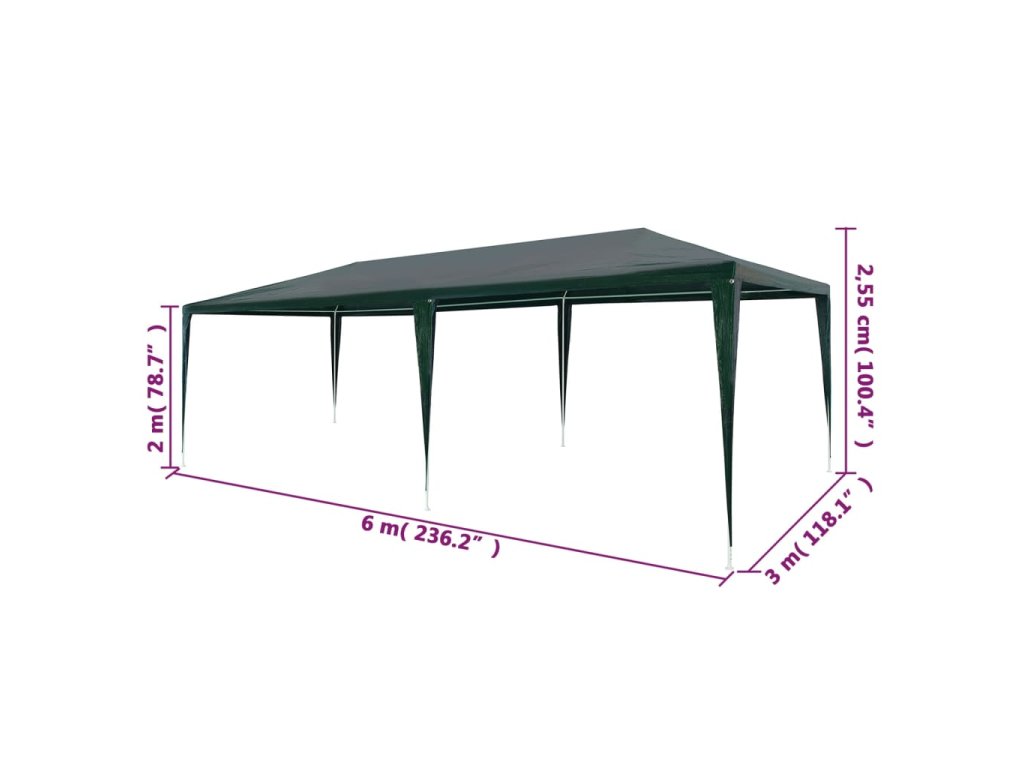 Párty stan je vyrobený z polyetylénového materiálu, ktorý je vodovzdorný a odolný voči UV žiareniu, a preto je naozaj vhodný do exteriéru. Rám je vyhotovený z ocele odolnej voči hrdzi, vďaka čomu je vonkajší prístrešok veľmi stabilný a trvácny. Záhradný altánok sa jednoducho montuje.