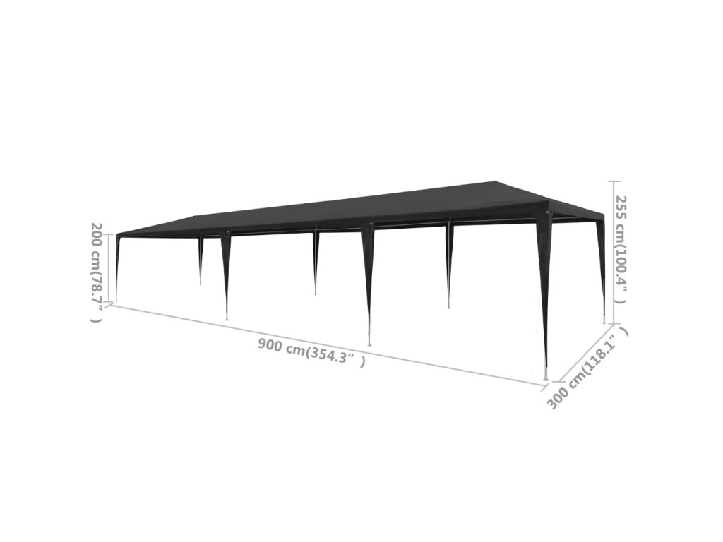 Párty stan je vyrobený z polyetylénového materiálu, ktorý je vodovzdorný a odolný voči UV žiareniu, a preto je naozaj vhodný do exteriéru. Rám je vyhotovený z ocele odolnej voči hrdzi, vďaka čomu je vonkajší prístrešok veľmi stabilný a trvácny. Záhradný altánok sa jednoducho montuje.