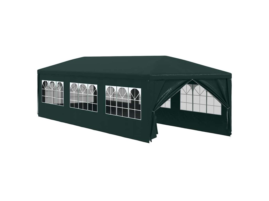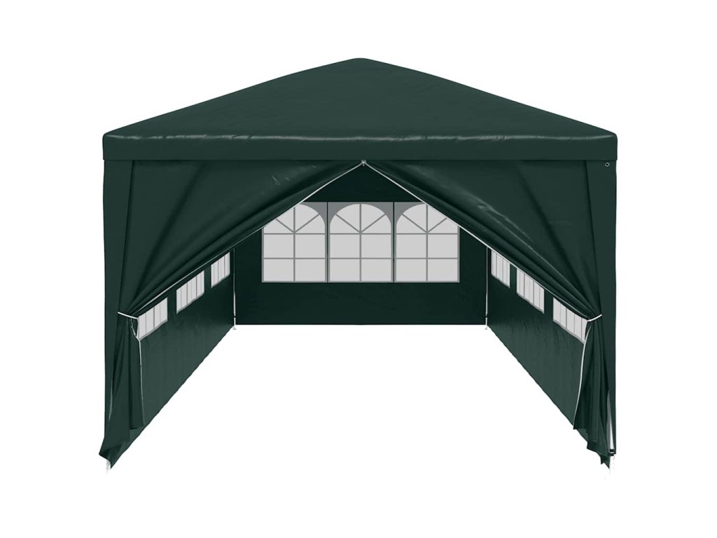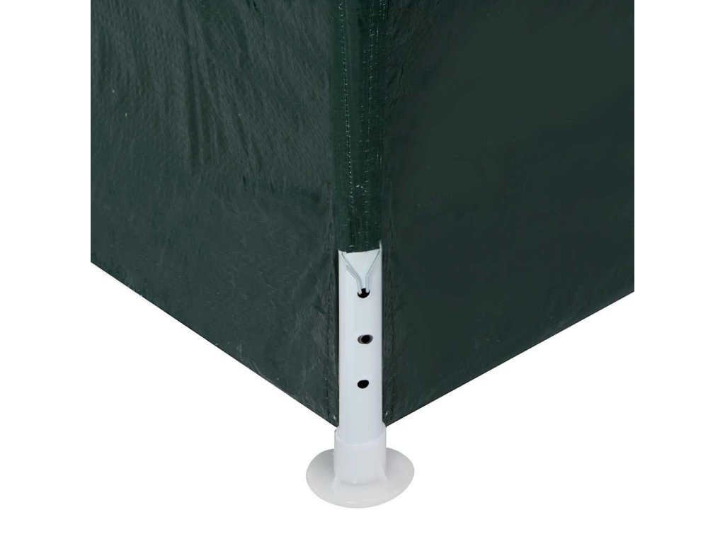Záhradný stan je vyrobený z polyetylénového materiálu, ktorý je vodovzdorný a odolný voči UV žiareniu, a preto je naozaj vhodný do exteriéru. Rám je vyhotovený z ocele odolnej voči hrdzi, vďaka čomu je vonkajší prístrešok veľmi stabilný a trvácny. Párty stan má bočné panely, pričom na každom z nich sa nachádzajú dekoratívne okienka, a 1 panel s dvierkami na zips, ktorý umožňuje jednoduchý prístup dovnútra. Záhradný altánok sa jednoducho montuje.