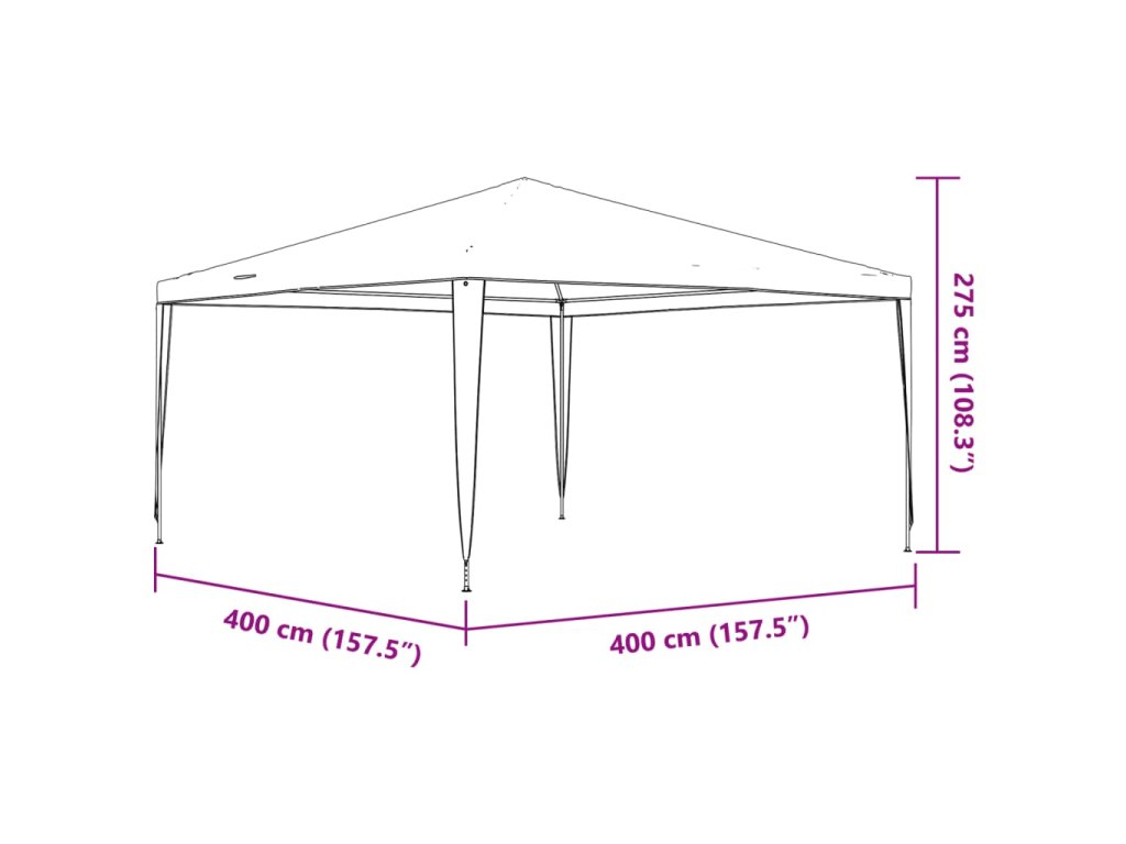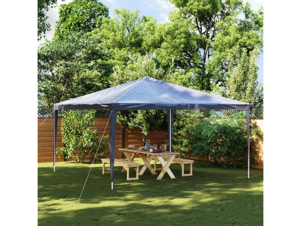 Párty stan je vyrobený z PE, ktorý je vodovzdorný a odolný voči UV žiareniu, a preto je mimoriadne vhodný do exteriéru. Rám je vyhotovený z odolného železa, vďaka čomu je vonkajší prístrešok stabilný a trvácny. Záhradný altánok sa jednoducho montuje.