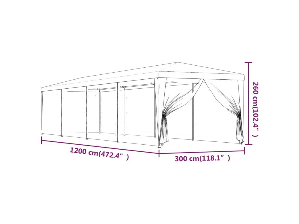 Tento štýlový párty stan pozostáva z odolného železného rámu, vodovzdornej striešky a 10 sieťkovaných bočných stien, vďaka čomu vám poskytne ideálny úkryt pred slnkom.