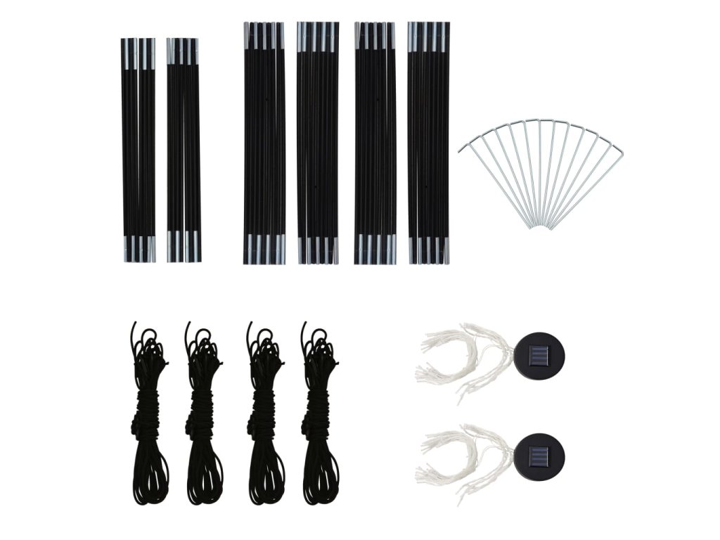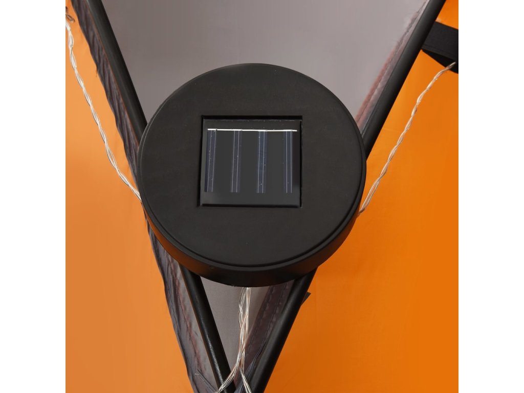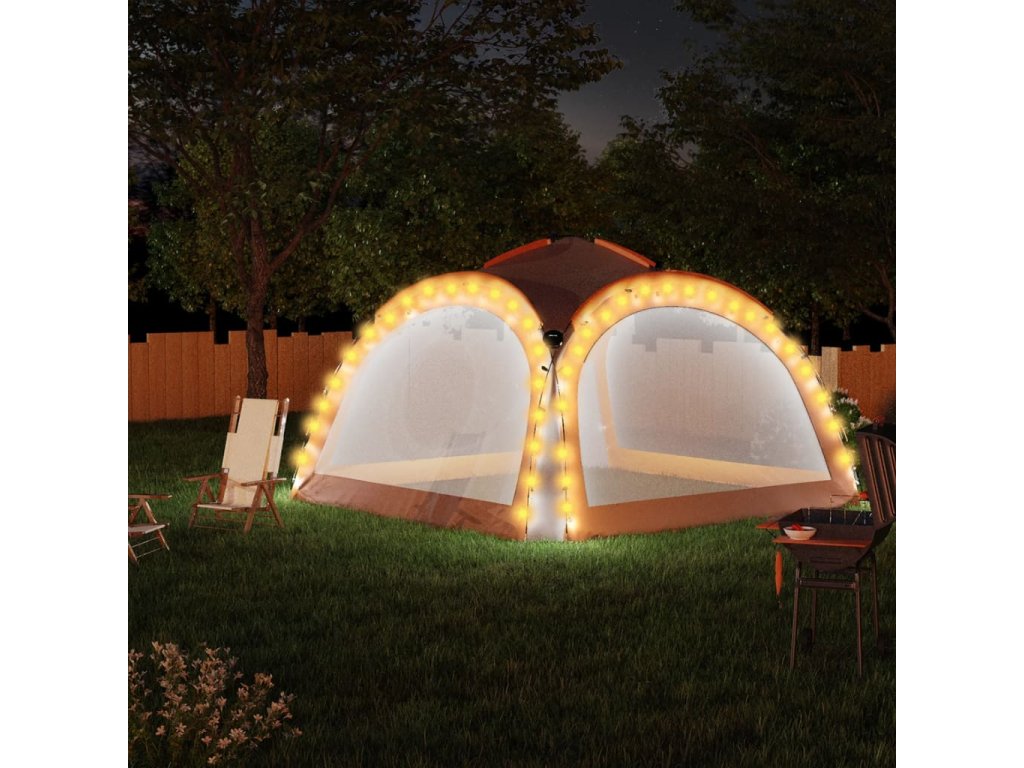 Tento párty stan je vyrobený zo 100 % polyesterovej látky s vrstvou PA, ktorá je odolná voči UV žiareniu. Rám je vyhotovený z robustného sklolaminátu, vďaka čomu je ľahký a odolný voči hrdzi. Súčasťou stanu sú aj štyri bočné steny, ktoré slúžia ako moskytiéra, a tak vám poskytnú ideálnu ochranu pred všetkými druhmi hmyzu. Majú zapínanie na zips, a tak ich pripevníte v priebehu pár sekúnd. LED svetlo s 96 LED diódami sa dá jednoducho ručne zapnúť a vypnúť. Súčasťou balenia je aj solárny modul, ktorý počas dňa nabíja zabudovanú batériu.
