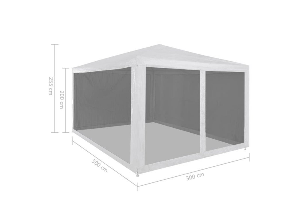 Párty stan je vyrobený z odolnej ocele s práškovou povrchovou úpravou, a preto je skutočne trvácny. Striešku tvorí vysokokvalitný PE, vďaka čomu je vodovzdorná a odolná voči UV žiareniu. Stan má štyri sieťkované bočné steny, ktoré vás ochránia pred nepríjemným hmyzom. Na jednej z týchto bočných stien sa nachádza vchod na zips, ktorý umožňuje jednoduchý prístup dovnútra. Párty stan sa ľahko montuje pomocou montážneho príslušenstva, ktoré je súčasťou balenia.