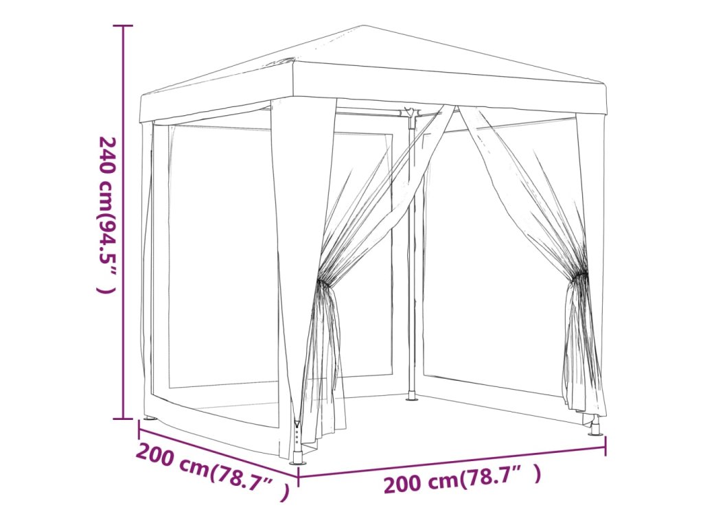 Tento super štýlový párty stan pozostáva z odolného železného rámu, vodovzdornej striešky a štyroch sieťkovaných bočných stien, vďaka čomu vám poskytne ideálny úkryt pred slnkom.