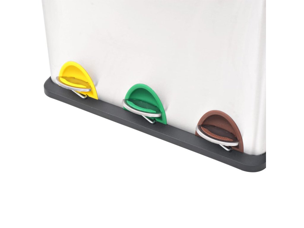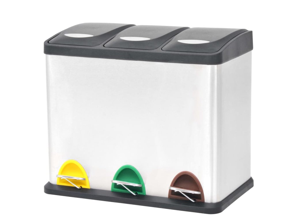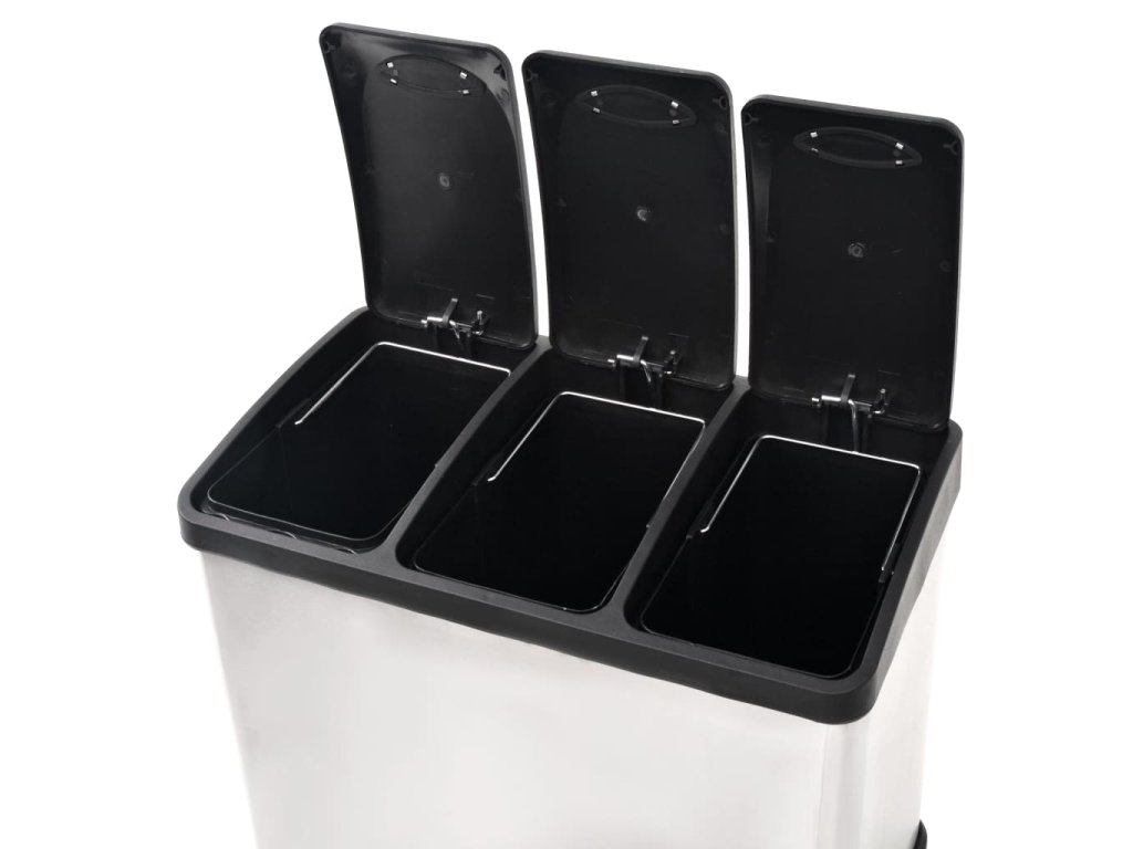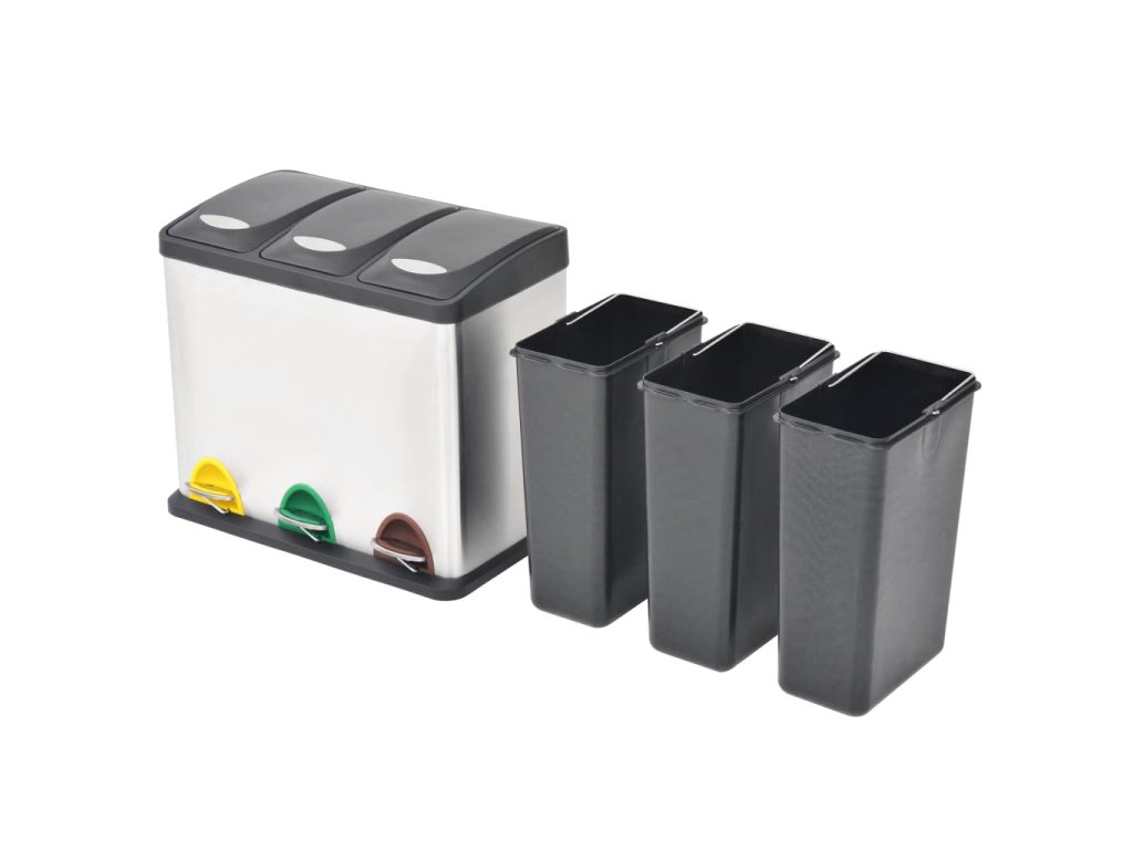 Tento elegantný a praktický pedálový odpadkový kôš na triedený odpad je nevyhnutným zariadením pre vašu kuchyňu, obývaciu izbu, kanceláriu, atď. Odpadkový kôš je vybavený 3 odnímateľnými vnútornými nádobami na triedenie odpadu.