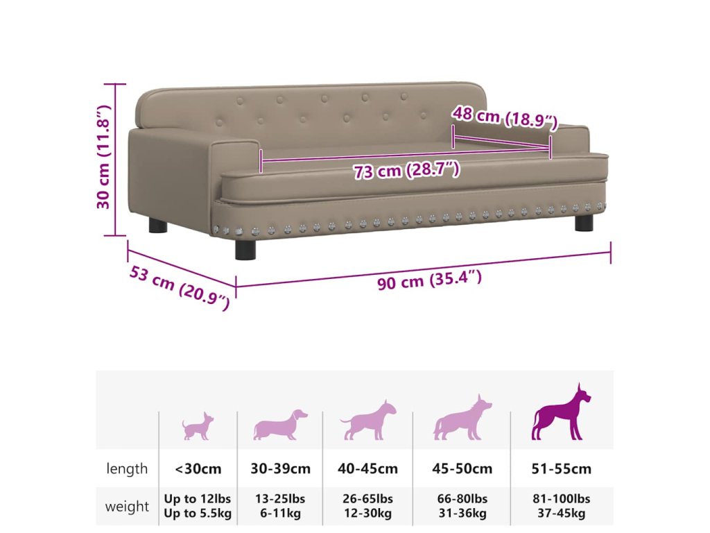 - Pohodlný a mäkký materiál: Pohovka pre domáce zvieratá je čalúnená hrubou a mäkkou penou a potiahnutá umelou kožou, ktorá poskytuje domácemu miláčikovi dostatočnú oporu a vynikajúce pohodlie.