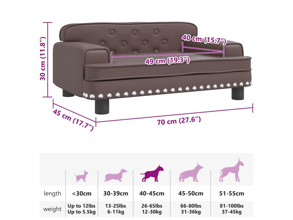 - Pohodlný a mäkký materiál: Pohovka pre domáce zvieratá je čalúnená hrubou a mäkkou penou a potiahnutá umelou kožou, ktorá poskytuje domácemu miláčikovi dostatočnú oporu a vynikajúce pohodlie.