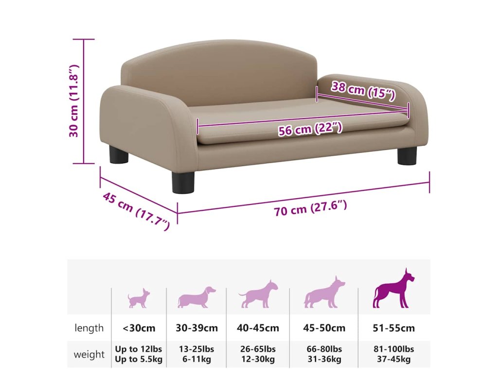 - Pohodlný a mäkký materiál: Pohovka pre domáce zvieratá je čalúnená hrubou a mäkkou penou a potiahnutá umelou kožou, ktorá poskytuje domácemu miláčikovi dostatočnú oporu a vynikajúce pohodlie.