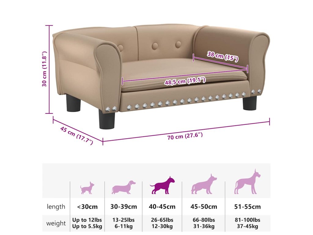 - Pohodlný a mäkký materiál: Pohovka pre domáce zvieratá je čalúnená hrubou a mäkkou penou a potiahnutá umelou kožou, ktorá poskytuje domácemu miláčikovi dostatočnú oporu a vynikajúce pohodlie.