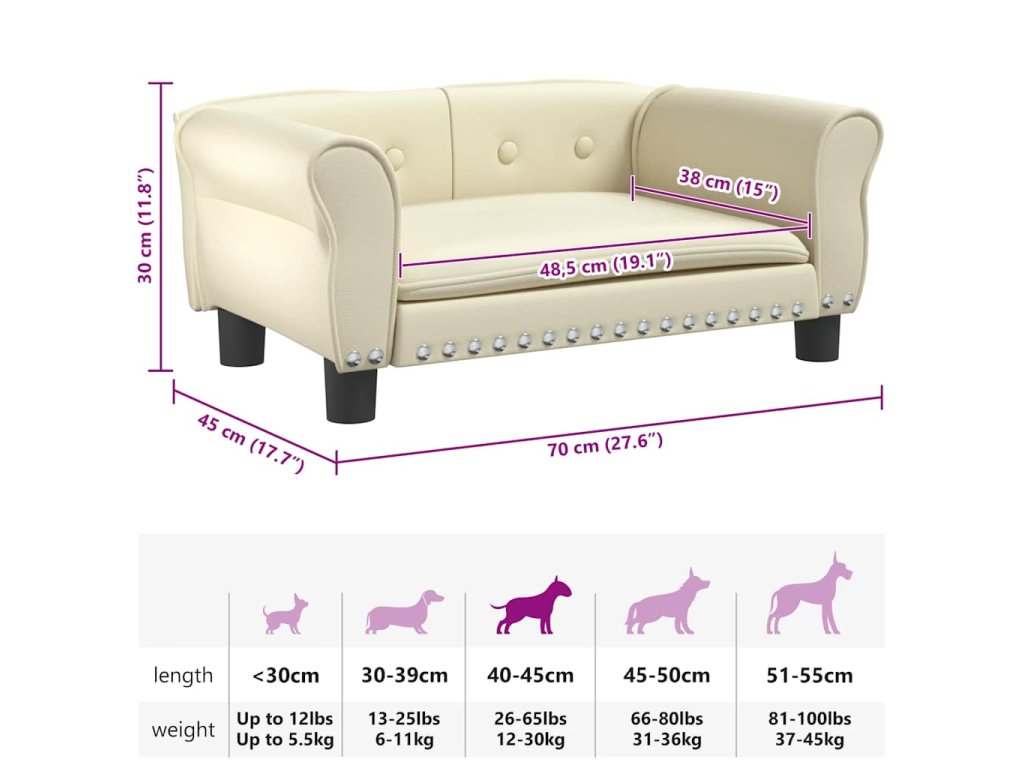 - Pohodlný a mäkký materiál: Pohovka pre domáce zvieratá je čalúnená hrubou a mäkkou penou a potiahnutá umelou kožou, ktorá poskytuje domácemu miláčikovi dostatočnú oporu a vynikajúce pohodlie.