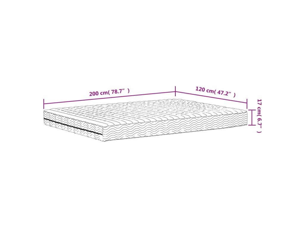 - Celkové rozmery: 120 x 200 x 17 cm (D x Š x H)