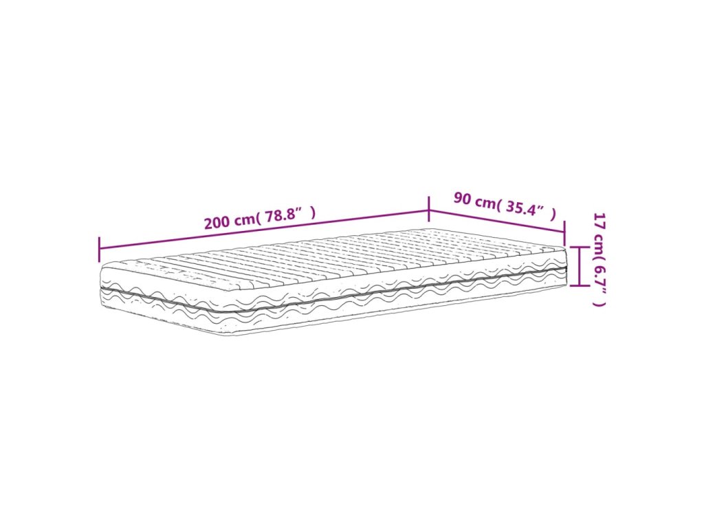- Celkové rozmery: 90 x 200 x 17 cm (D x Š x H)