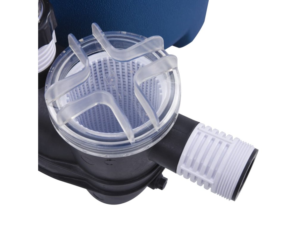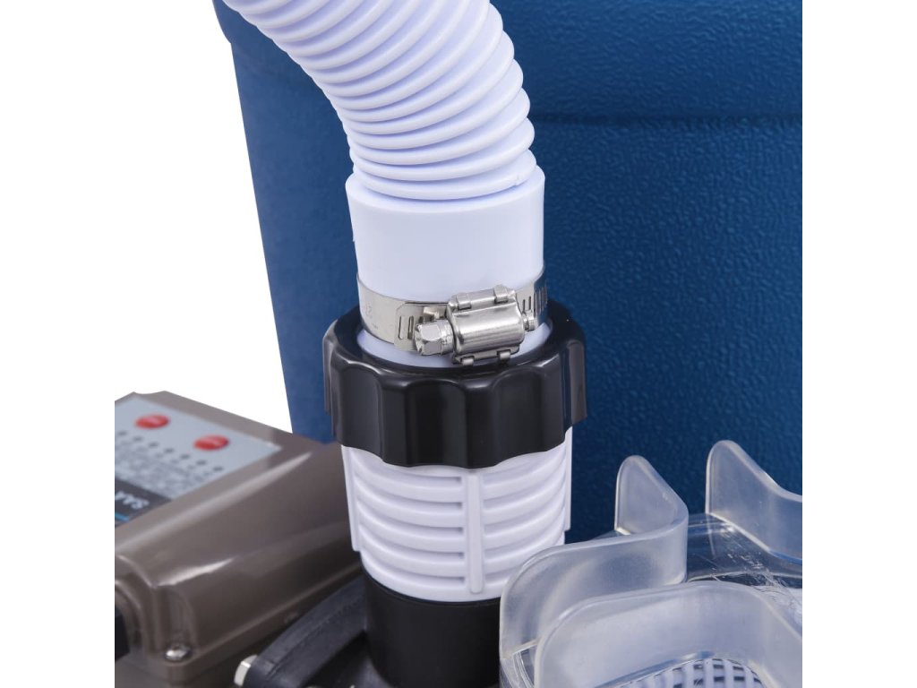 Pieskový filter dokáže prefiltrovať 10980 litrov za hodinu a je vybavený odolnou filtračnou nádržou odolnou voči korózii. Je odolný voči kyslosti chlórovanej bazénovej vody. Má vstavaný časovač, požadované prevádzkové časy môžete nastaviť na 2, 4, 6, 8, 10, 16 a 24 hodín. Časovač má 2 režimy: nepretržitý režim a režim jedného cyklu. V nepretržitom režime bude čerpadlo pracovať po stanovenú dobu, potom zastaví. Tento program zopakuje každý deň. V prípade modelu s jedným cyklom bude čerpadlo pracovať po zvolený počet hodín a potom zastaví. Prevádzkové hodiny sa dajú ľahko nastaviť stlačením tlačidla časovača. K dispozícii je tiež doplnkový predfilter, ktorý zabráni znečisteniu hrubého pieskového filtra. Konštrukcia horných prírubových svoriek umožňuje otočenie o 360 stupňov pre ľahkú inštaláciu. Vďaka zosilnenému plastovému krytu je toto bazénové filtračné čerpadlo trvácne a odolné voči poveternostným vplyvom. Táto sada obsahuje pevnú základňu pre bezpečnú montáž. Je kompatibilná s väčšinou nadzemných bazénov s otvorom 38 mm.