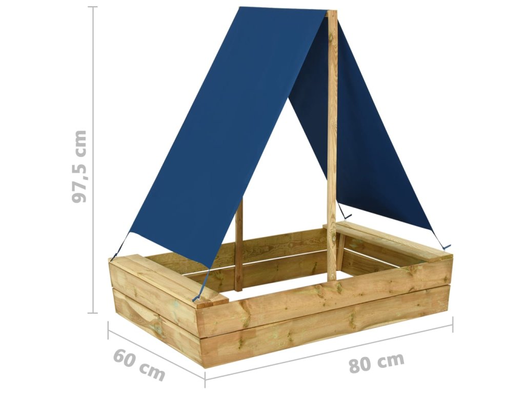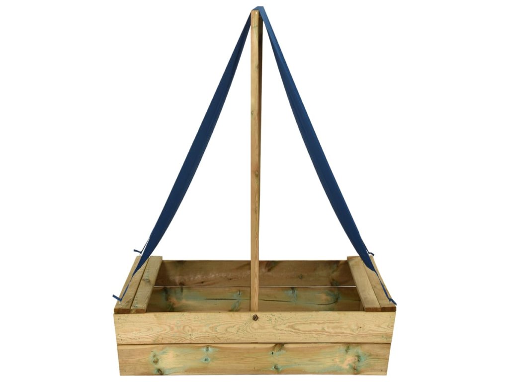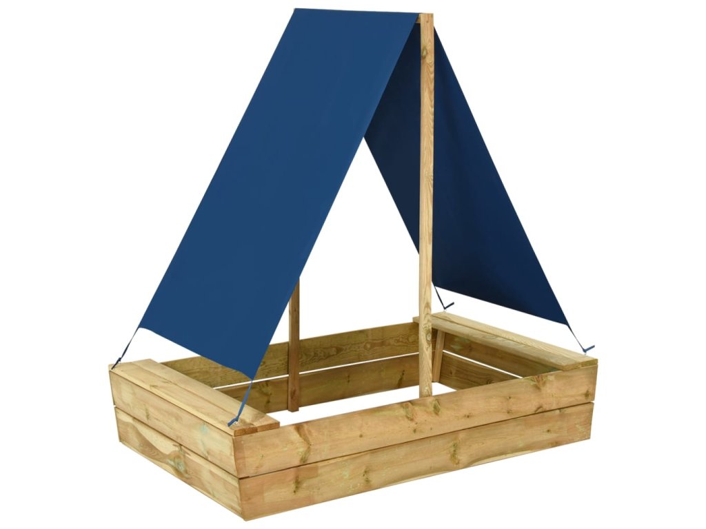 Záhradné pieskovisko je vyrobené z impregnovaného borovicového dreva, ktoré je stabilné, odolné voči hnilobe a extra pevné. Pieskovisko je vybavené látkovou strechou, ktorá ochráni deti pred priamym slnečným žiarením. Tiež sa dá ľahko odobrať na umytie alebo skladovanie, keď sa nepoužíva. Vďaka veľkému priestoru sa do neho zmestí niekoľko detí súčasne. Vaše deti sa určite budú skvele baviť pri kopaní a stavaní hradov so svojimi priateľmi.