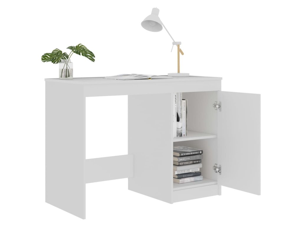 Písací stôl je vyrobený z kvalitného kompozitného dreva, vďaka čomu je robustný a trvácny. Písací stôl so zabudovanou skrinkou ponúka množstvo úložného priestoru na odkladanie kníh, časopisov, šanónov či iných potrieb.