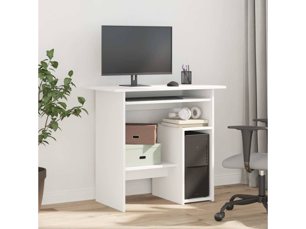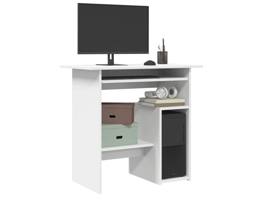 Počítačový stôl je vyrobený z kvalitného kompozitného dreva, vďaka čomu je robustný, trvácny a má dlhú životnosť. Pracovný stôl je ideálny do menších kancelárií, na internát či do domácností s obmedzeným priestorom, no zíde sa aj vtedy, keď chcete dostupný priestor využiť na maximum. Otvorená polička na pravej strane poskytuje dostatok miesta na PC skrinku. Pod praktickou doskou na klávesnicu navyše nájdete dostatok priestoru na odkladanie šanónov.