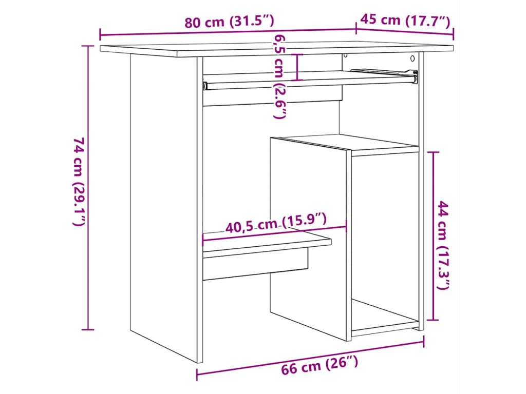 Počítačový stôl je vyrobený z kvalitného kompozitného dreva, vďaka čomu je robustný, trvácny a má dlhú životnosť. Pracovný stôl je ideálny do menších kancelárií, na internát či do domácností s obmedzeným priestorom, no zíde sa aj vtedy, keď chcete dostupný priestor využiť na maximum. Otvorená polička na pravej strane poskytuje dostatok miesta na PC skrinku. Pod praktickou doskou na klávesnicu navyše nájdete dostatok priestoru na odkladanie šanónov.