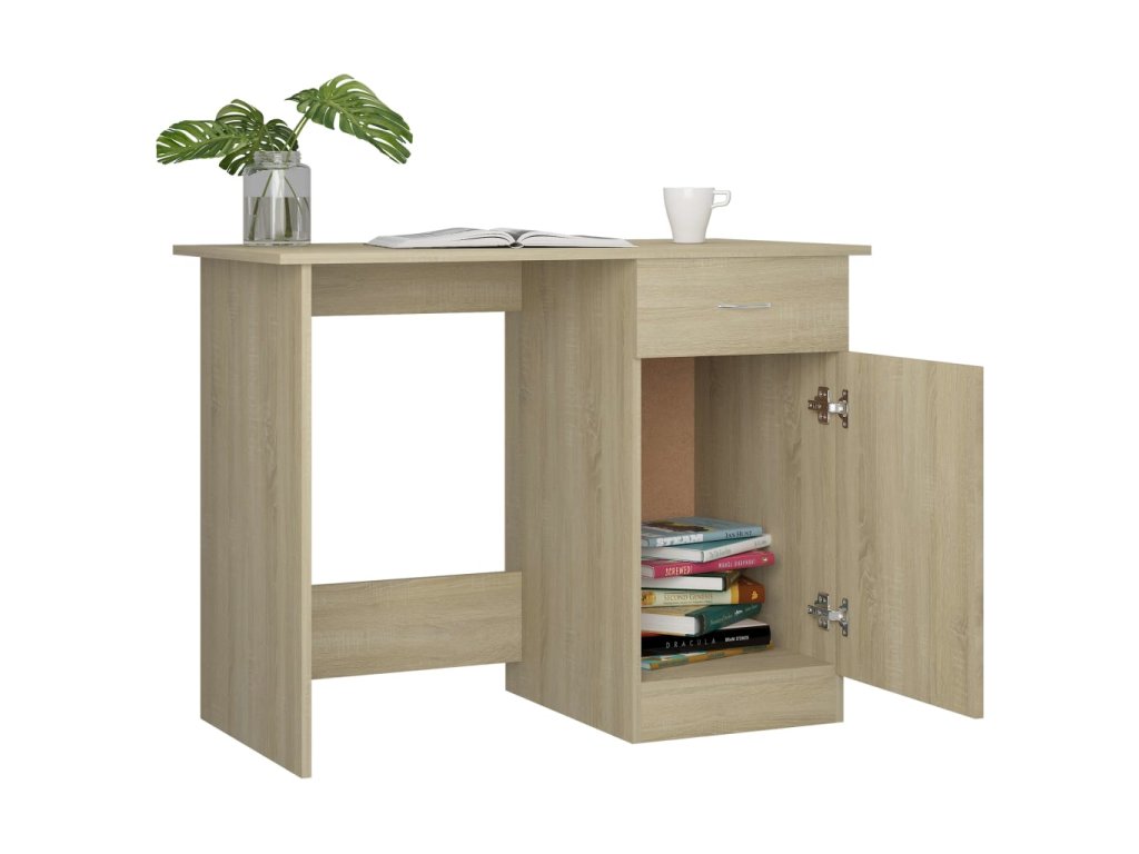 Stôl je vyrobený z kvalitného kompozitného dreva, vďaka čomu je robustný, trvácny a má dlhú životnosť. Tento písací stôl so zabudovanou zásuvkou a dvierkami poskytuje dostatok úložného priestoru, a tak je ako stvorený do menších kancelárií, internátnych izieb či do menších domácností! Môžete ho využívať aj ako konzolový stolík do chodby.