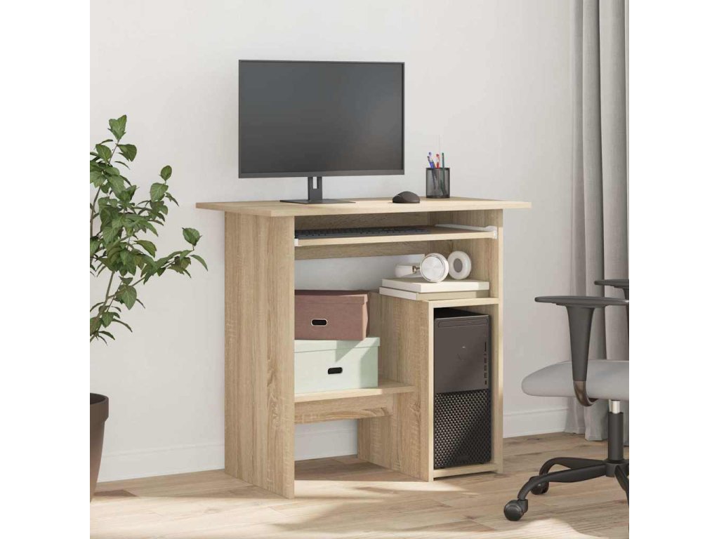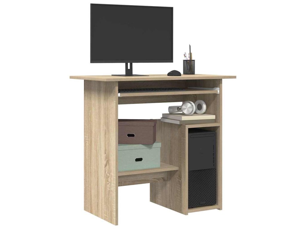 Počítačový stôl je vyrobený z kvalitného kompozitného dreva, vďaka čomu je robustný, trvácny a má dlhú životnosť. Pracovný stôl je ideálny do menších kancelárií, na internát či do domácností s obmedzeným priestorom, no zíde sa aj vtedy, keď chcete dostupný priestor využiť na maximum. Otvorená polička na pravej strane poskytuje dostatok miesta na PC skrinku. Pod praktickou doskou na klávesnicu navyše nájdete dostatok priestoru na odkladanie šanónov.