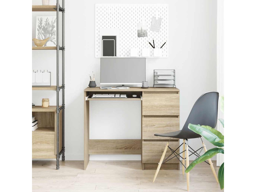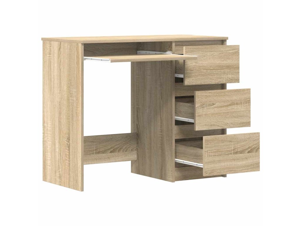 Písací stôl je vyrobený z kvalitného kompozitného dreva, vďaka čomu je robustný, trvácny a má dlhú životnosť. Písací stôl s dĺžkou 90 cm nezaberá veľa miesta, a tak je vhodný do detských či študentských izieb a dokonca sa dá umiestniť do rohu miestnosti. Dizajn so zásuvkami poskytuje väčší úložný priestor na šanóny, knihy či iné potreby. Kancelársky písací stôl sa navyše ľahko udržiava a dá sa očistiť navlhčenou handričkou.