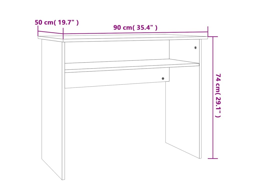 Počítačový stôl je vyrobený z kvalitného kompozitného dreva, vďaka čomu je robustný, trvácny a má dlhú životnosť. Písací stôl s dĺžkou 90 cm nezaberá veľa miesta, a tak je vhodný do detských či študentských izieb. Písací stôl má úložnú poličku na šanóny, knihy či iné potreby. Kancelársky písací stôl sa navyše dá ľahko očistiť navlhčenou handričkou.