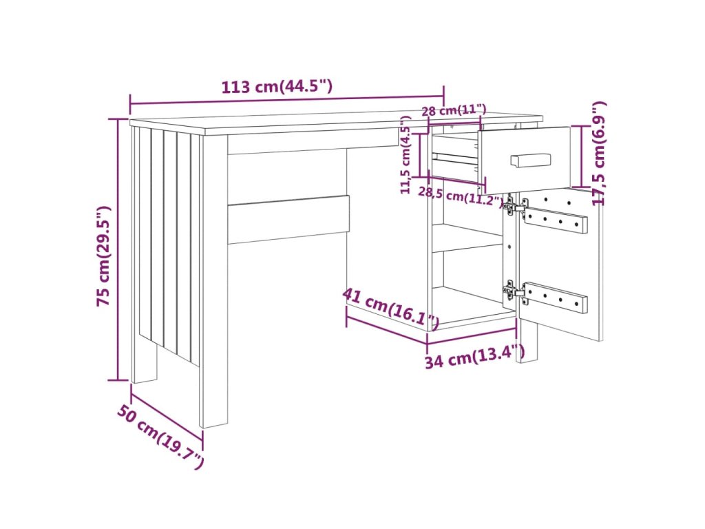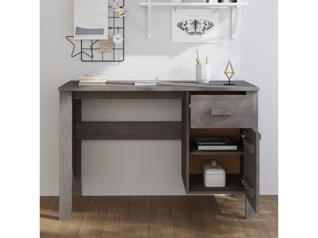Písací stôl je vyrobený z borovicového masívu, vďaka čomu je stabilný a pevný. Počítačový stôl má zásuvku a dvierka, a tak poskytuje množstvo úložného priestoru na prehľadné odkladanie dokumentov a ďalších kancelárskych potrieb, ktoré tak budete mať vždy poruke.