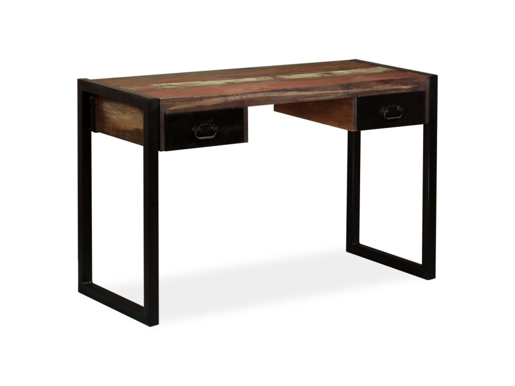 Z tohto dreveného písacieho stola v industriálnom štýle vyžaruje vintage atmosféra, a tak predstavuje nadčasový doplnok do domácnosti. Má dve zásuvky, ktoré poskytujú množstvo priestoru na odkladanie menších predmetov, ako napríklad kľúčov, zápisníkov a iných drobností. Kancelársky stôl môžete využívať aj ako komodu či konzolový stolík.