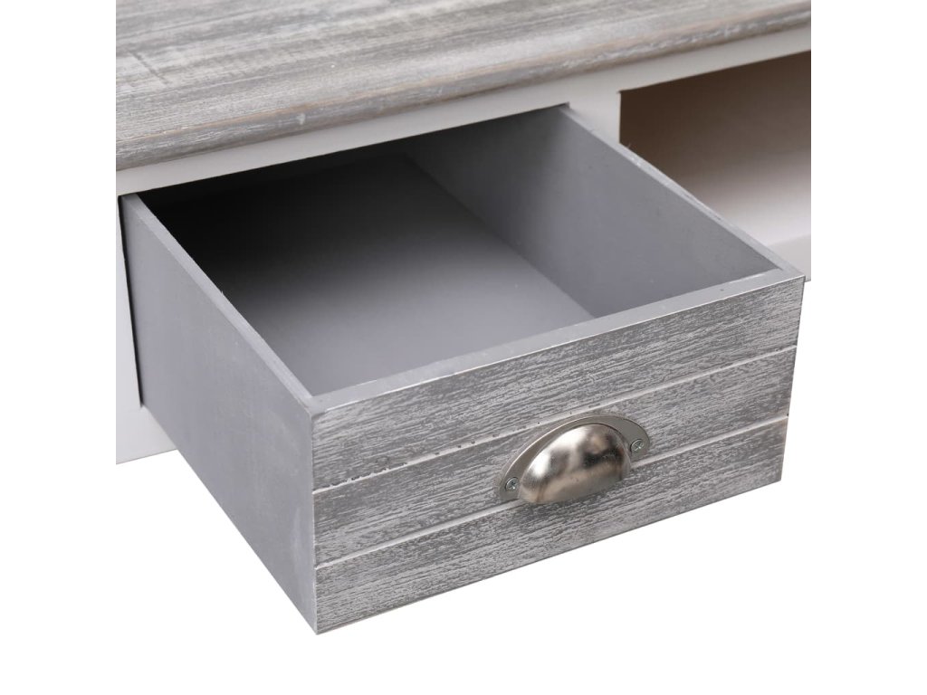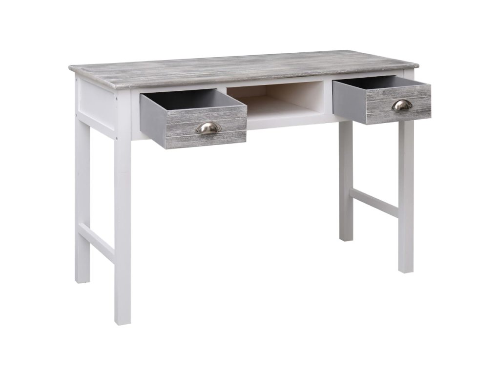 Tento stôl je vyrobený z kvalitného dreva paulovnie a topoľa, je odolný a trvácny. Obsahuje dve zásuvky a jeden otvorený priečinok v strede, aby boli vaše šanóny a ďalšie základné potreby usporiadané a ľahko dostupné.