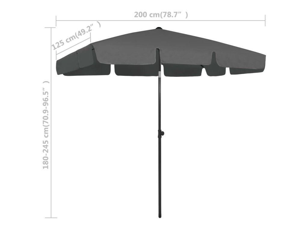 - Plocha slnečníka: 200 x 125 cm (D x Š)