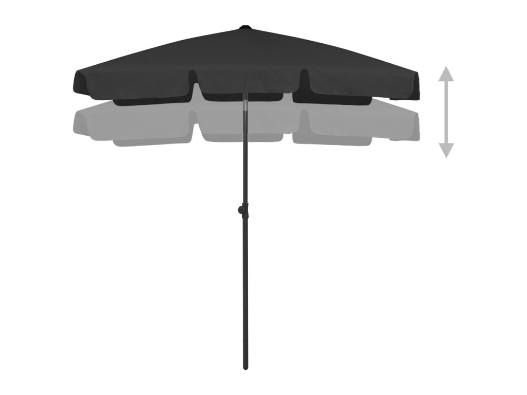 Plážový slnečník je vyrobený z polyesteru, ktorý nevybledne a je odolný voči UV žiareniu, a preto vás dokonale ochráni pred škodlivými slnečnými UV lúčmi.