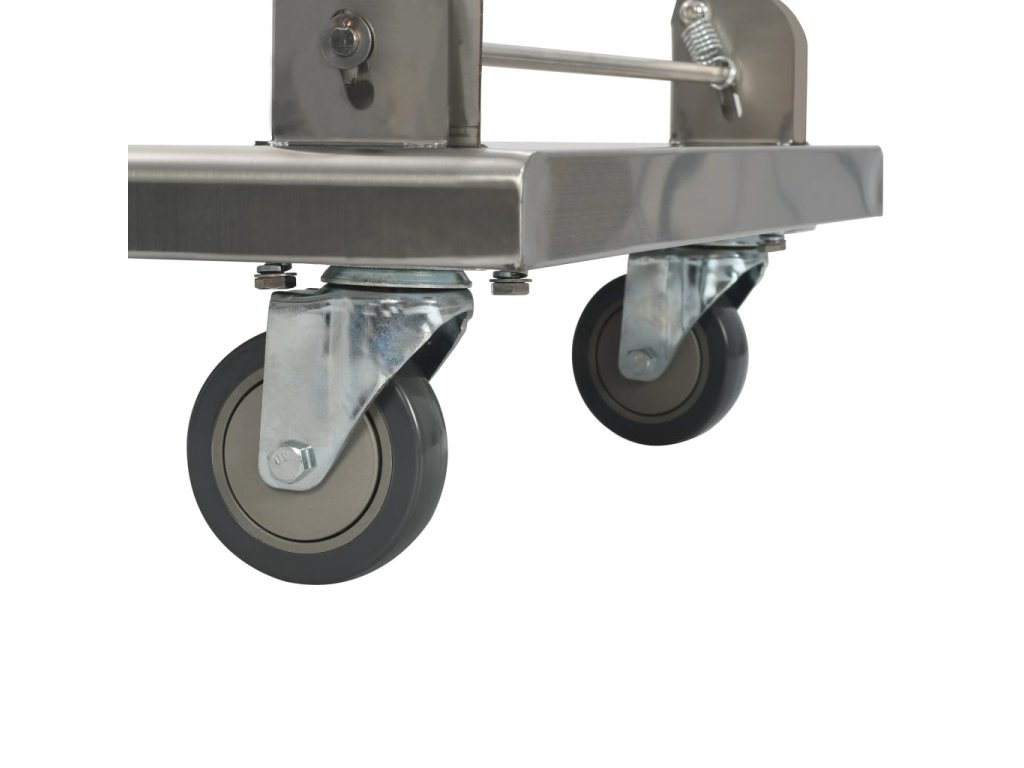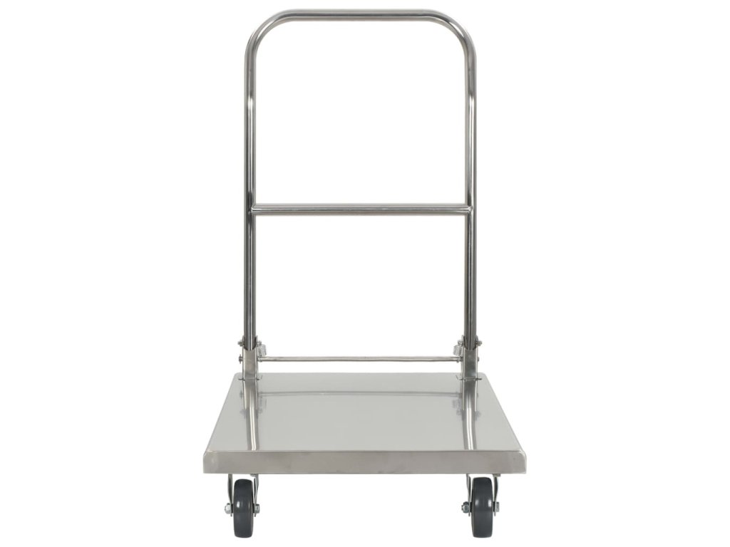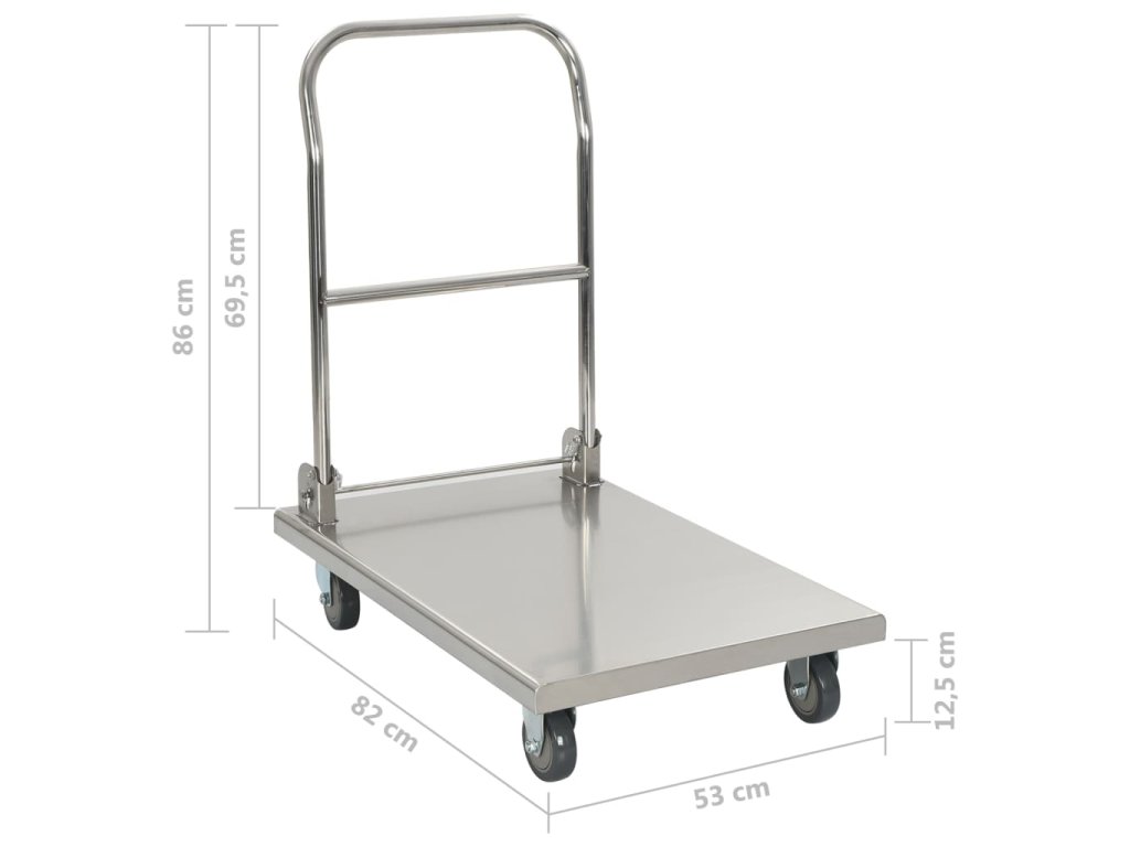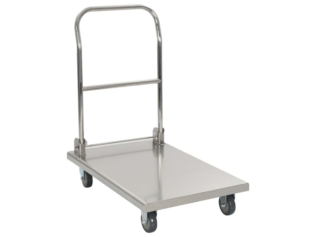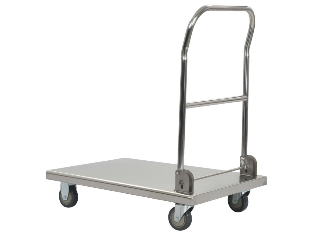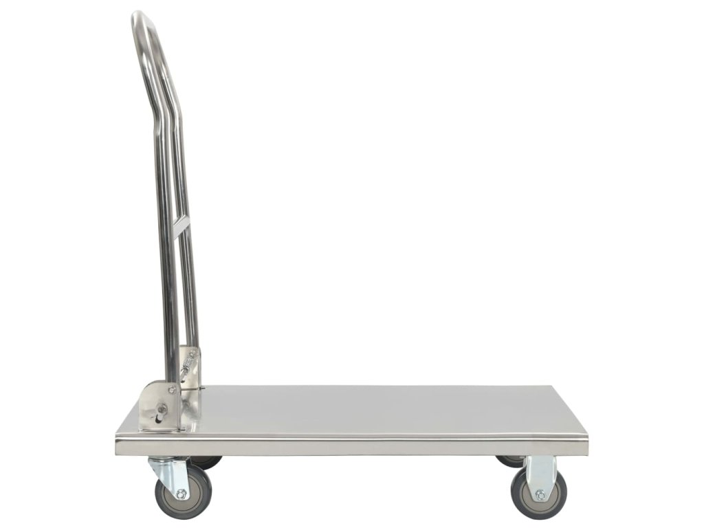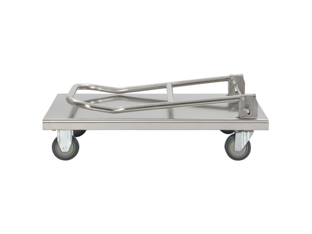 Plošinový vozík je vyrobený z nehrdzavejúcej ocele, a preto je veľmi trvácny a odolný. Vozík má maximálnu nosnosť 200 kg. Okrem toho sa dá jednoducho poskladať pomocou nožného ovládania, aby nezaberal veľa miesta, keď sa nepoužíva. Plošinový vozík je vybavený 2 otočnými kolieskami a 2 pevnými kolieskami, ktoré umožňujú hladkú a tichú prepravu.