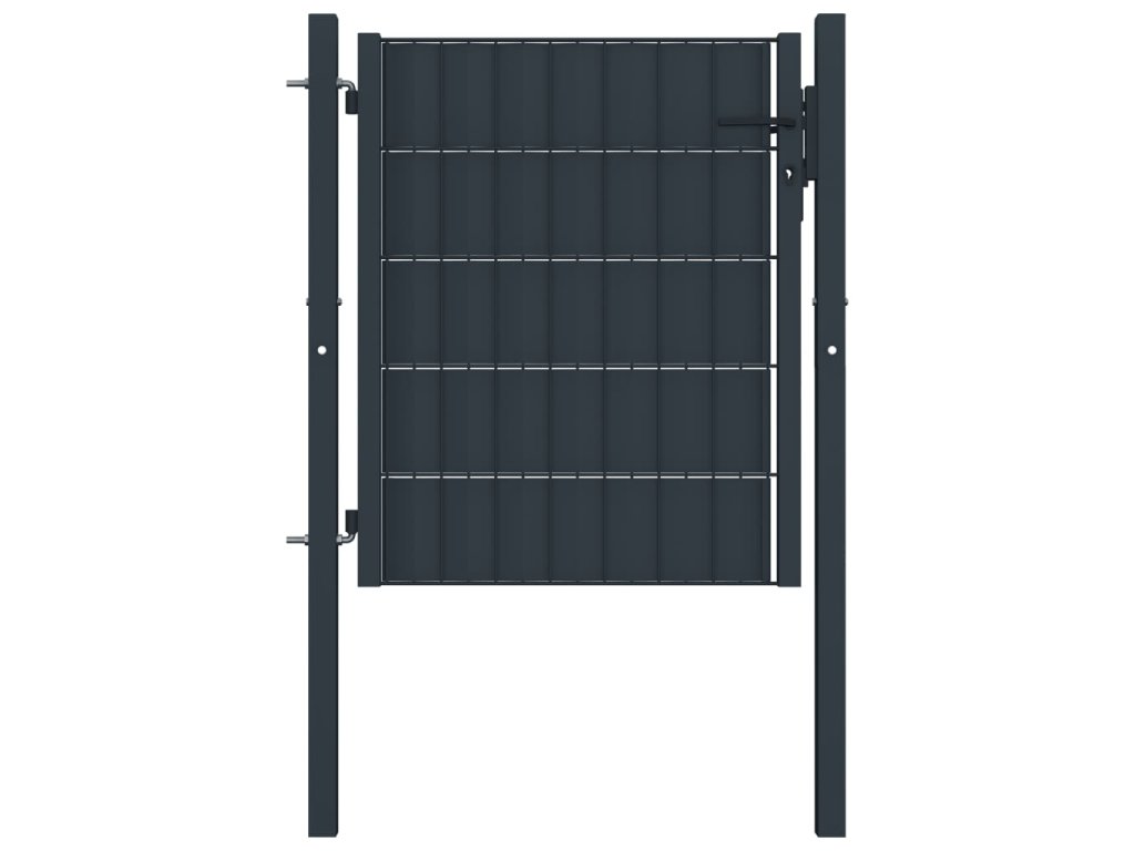 Záhradná brána je vyrobená z PVC fólie a ocele, ktorá zaručuje vynikajúcu trvácnosť a stabilitu a vďaka pevnej konštrukcii je mimoriadne robustná. Naša záhradná brána navyše poskytuje optimálnu bezpečnosť a súkromie, a zároveň vytvára pôsobivý vstup na pozemok. Brána sa dodáva spolu s dvoma pevnými stĺpikmi a robustnými pántmi pre jednoduchú inštaláciu.