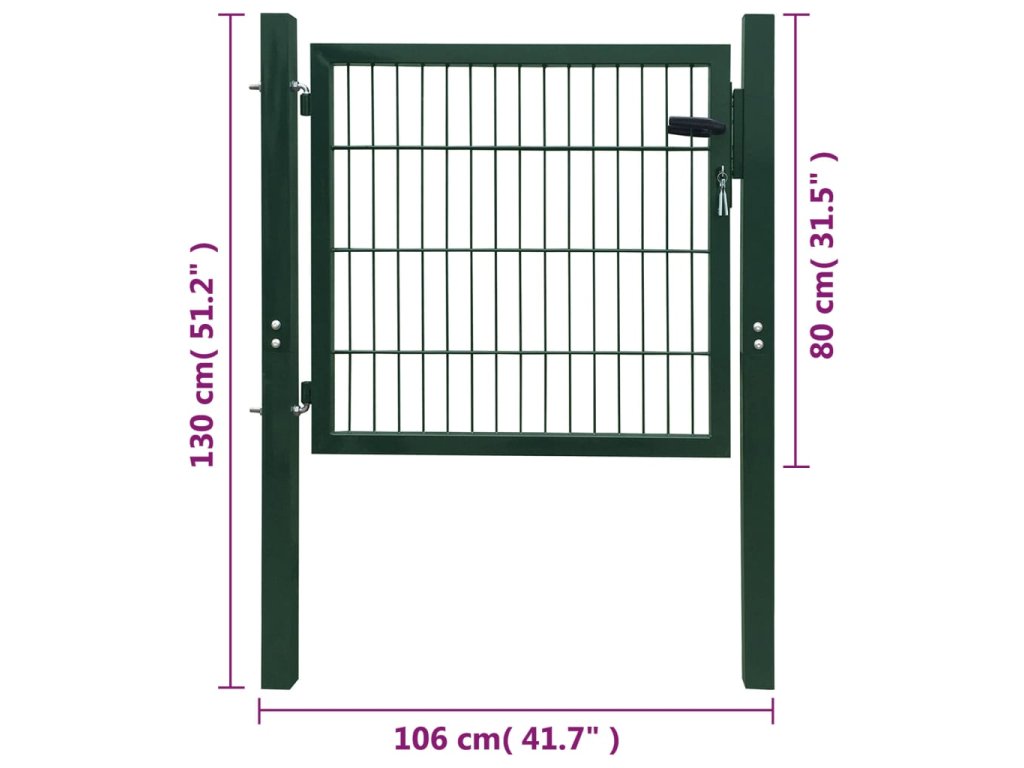 Plotová brána 2D sa dodáva spolu s robustnými pántmi pre jednoduchú inštaláciu a súčasťou balenia je aj odolný uzamykací systém s dvoma kľúčmi. Záhradná brána stelesňuje dokonalú kombináciu štýlu, pevnosti, stability a odolnosti voči korózii!