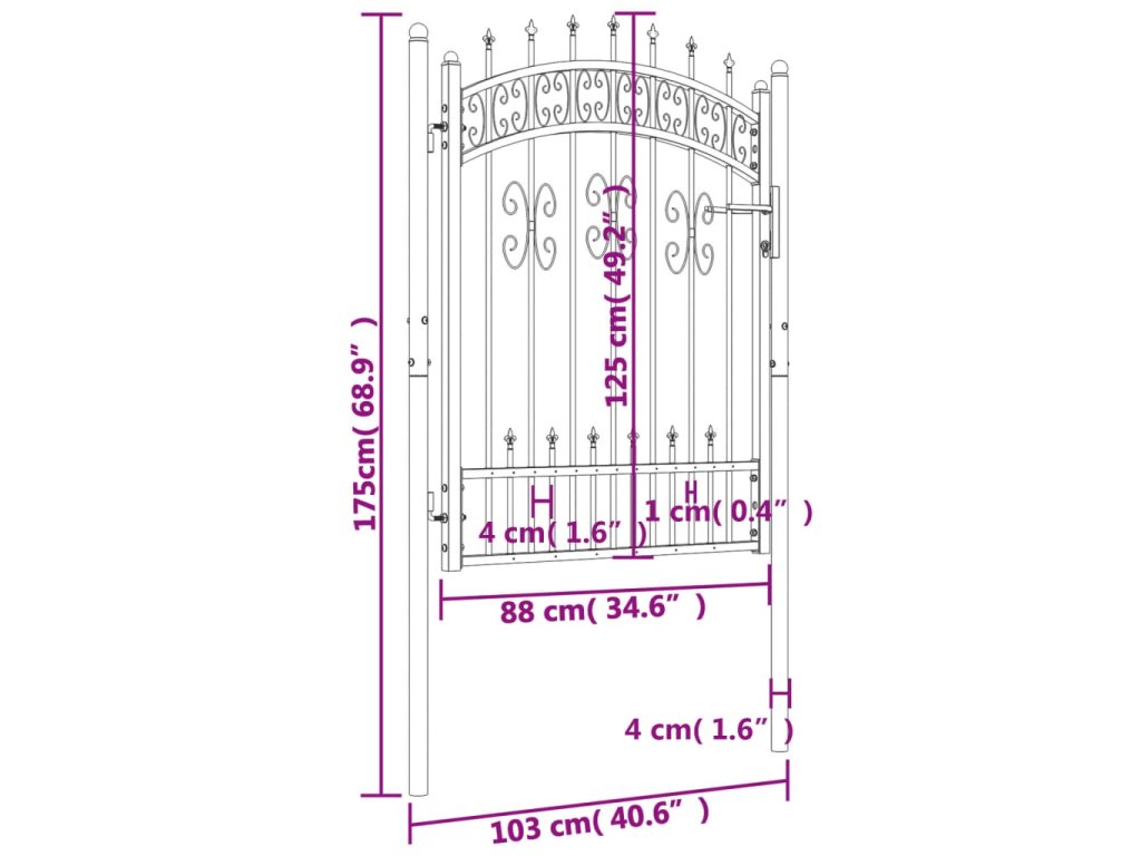 - Odolný materiál: Záhradná brána je vyrobená z ocele s práškovým nástrekom a je mimoriadne stabilná, pevná a odolná.