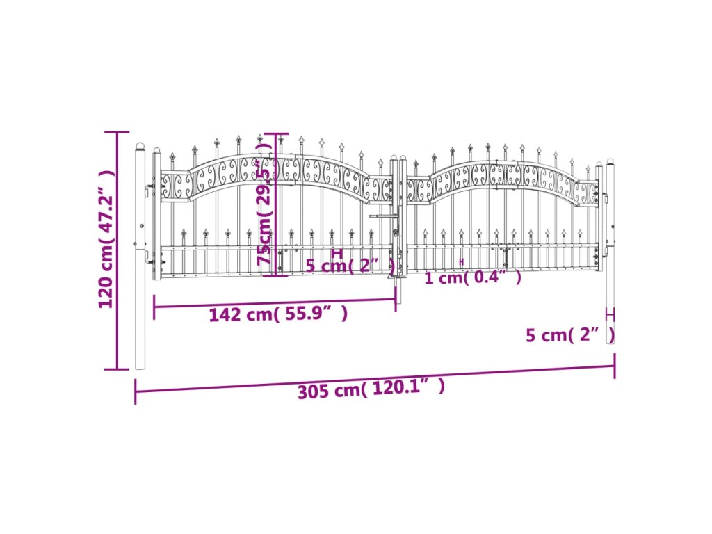 - Dizajn s vysokou bezpečnosťou: Brána poskytuje vysoký stupeň bezpečnosti s elegantným klenutým vrchným dizajnom a silnými horizontálnymi výstuhami na vystuženie rámu a zároveň vytvára úžasný vstup do vášho pozemku.