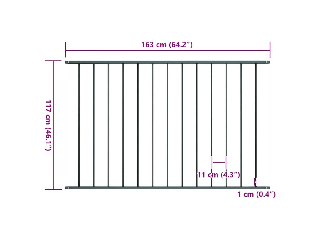 Tento plotový panel je vyrobený z pevnej ocele s práškovou povrchovou úpravou a v kombinácii so stĺpikmi (nie sú súčasťou balenia) vám umožní postaviť si robustné a trvácne oplotenie okolo záhrady. Plotový panel je odolný voči korózii a poveternostným vplyvom a postára sa o to, aby sa na váš pozemok nedostali neželaní hostia. Záhradný plot sa dodáva spolu s montážnymi materiálmi, a tak sa dá jednoducho osadiť do zeme.