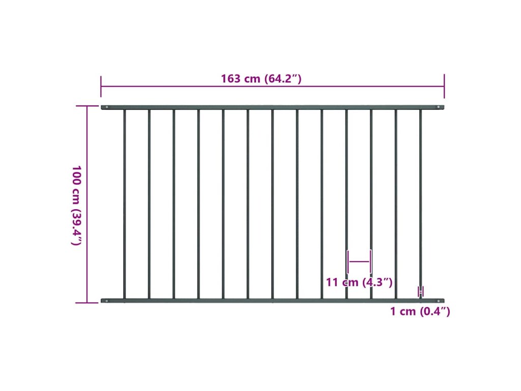 Tento plotový panel je vyrobený z pevnej ocele s práškovou povrchovou úpravou a v kombinácii so stĺpikmi (nie sú súčasťou balenia) vám umožní postaviť si robustné a trvácne oplotenie okolo záhrady. Plotový panel je odolný voči korózii a poveternostným vplyvom a postára sa o to, aby sa na váš pozemok nedostali neželaní hostia. Záhradný plot sa dodáva spolu s montážnymi materiálmi, a tak sa dá jednoducho osadiť do zeme.