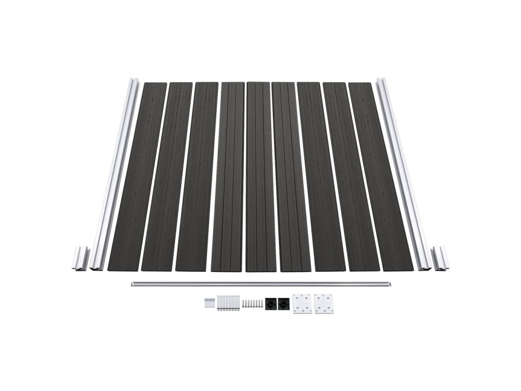 - Materiál: WPC (drevoplastový kompozit), hliník, oceľ