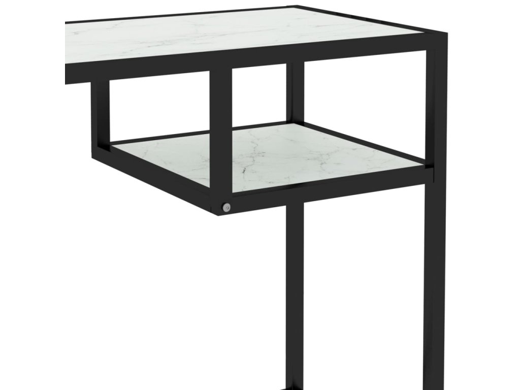 Písací stôl je vyrobený zo skla a kovu, a preto je mimoriadne stabilný, pevný a trvácny. Oceľový rám stolu navyše dodáva industriálny vzhľad, ktorý do vášho interiéru vnesie jedinečný šarm. Pozdvihnite svoj interiér na vyššiu úroveň s týmto moderným kancelárskym stolom!