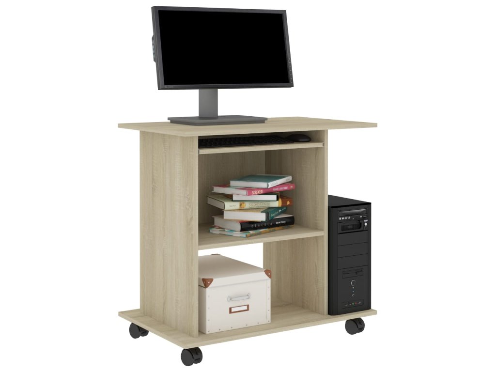 Veľká pracovná plocha umožňuje pohodlné používanie počítača a písacích potrieb. Počítačový stôl obsahuje výsuvnú dosku na klávesnicu, 1 špeciálnu poličku na CPU vežu a 2 poličky na ďalšie potreby k počítaču. Pracovný stôl je vyrobený z kompozitného dreva, a tak vám bude slúžiť dlhé roky. Stôl je vybavený kolieskami, aby sa dal jednoducho presúvať.