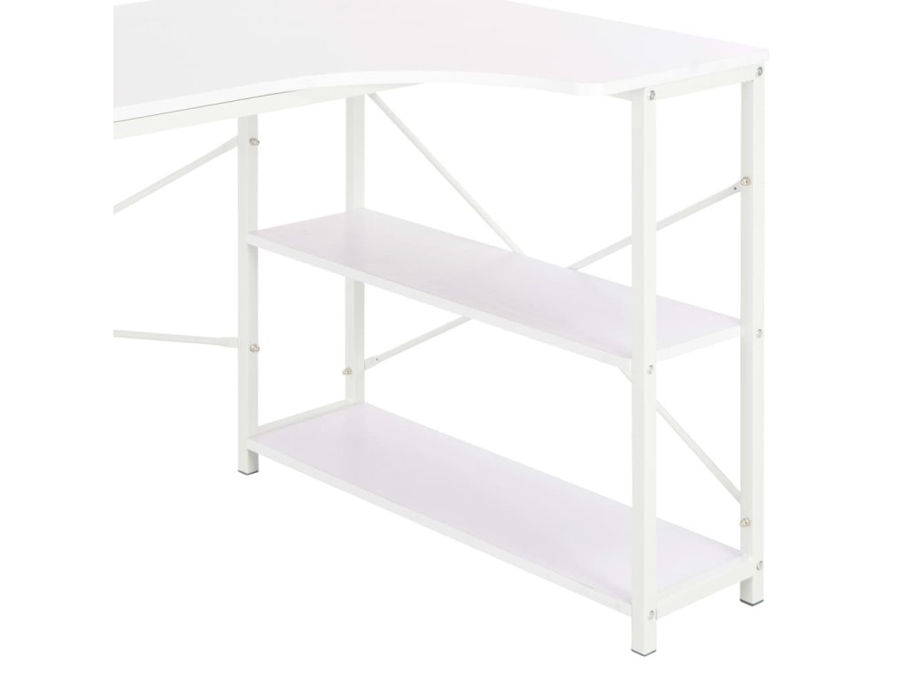 Písací stôl v tvare L má dve police na odkladanie kníh, šanónov, dokumentov či na vystavenie rôznych dekorácií. Písací stôl je vyrobený z kompozitného dreva a kovu s práškovou povrchovou úpravou, vďaka čomu je mimoriadne stabilný, robustný a trvácny. Oceľový rám stolu navyše dodáva industriálny vzhľad, ktorý do vášho interiéru vnesie jedinečný šarm. Skrášlite si bývanie s týmto moderným kancelárskym stolom!