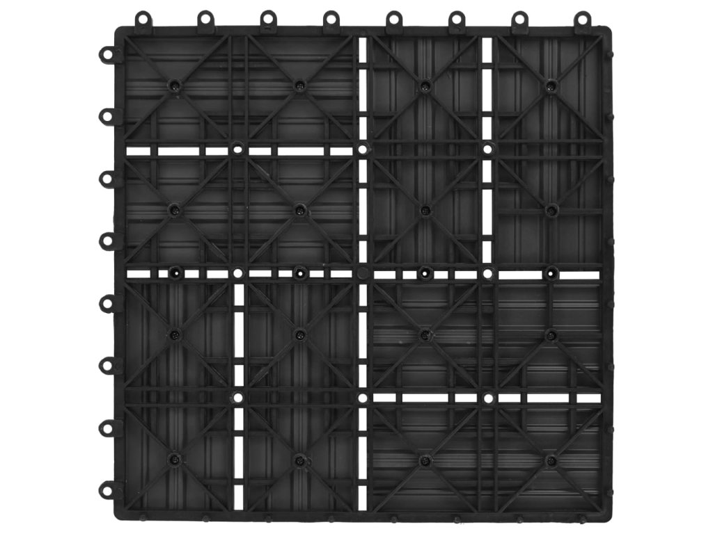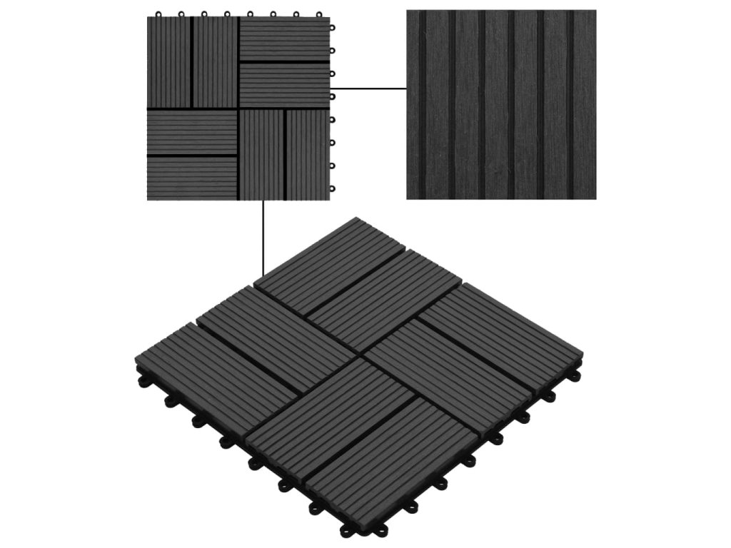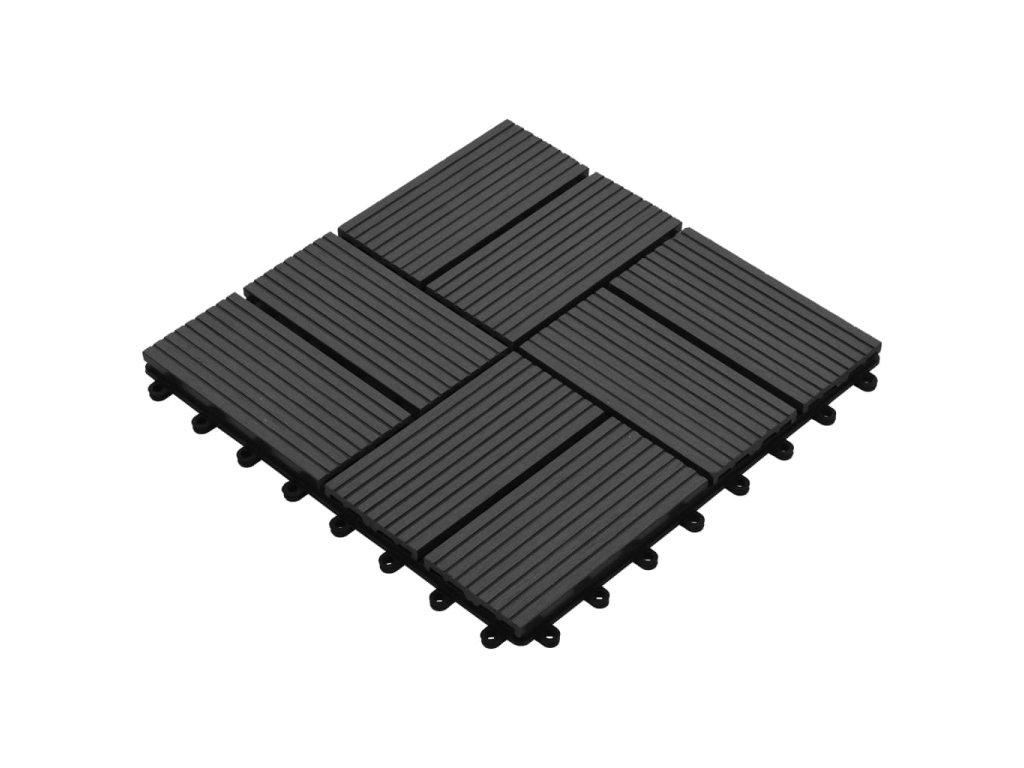 Táto sada pozostáva z 22 podlahových dosiek z WPC s rozmerom 30 x 30 cm a celkovo pokrýva plochu 2 metrov štvorcových. Je ako stvorená na terasy, balkóny, do kúpeľní alebo k bazénu či vírivke.