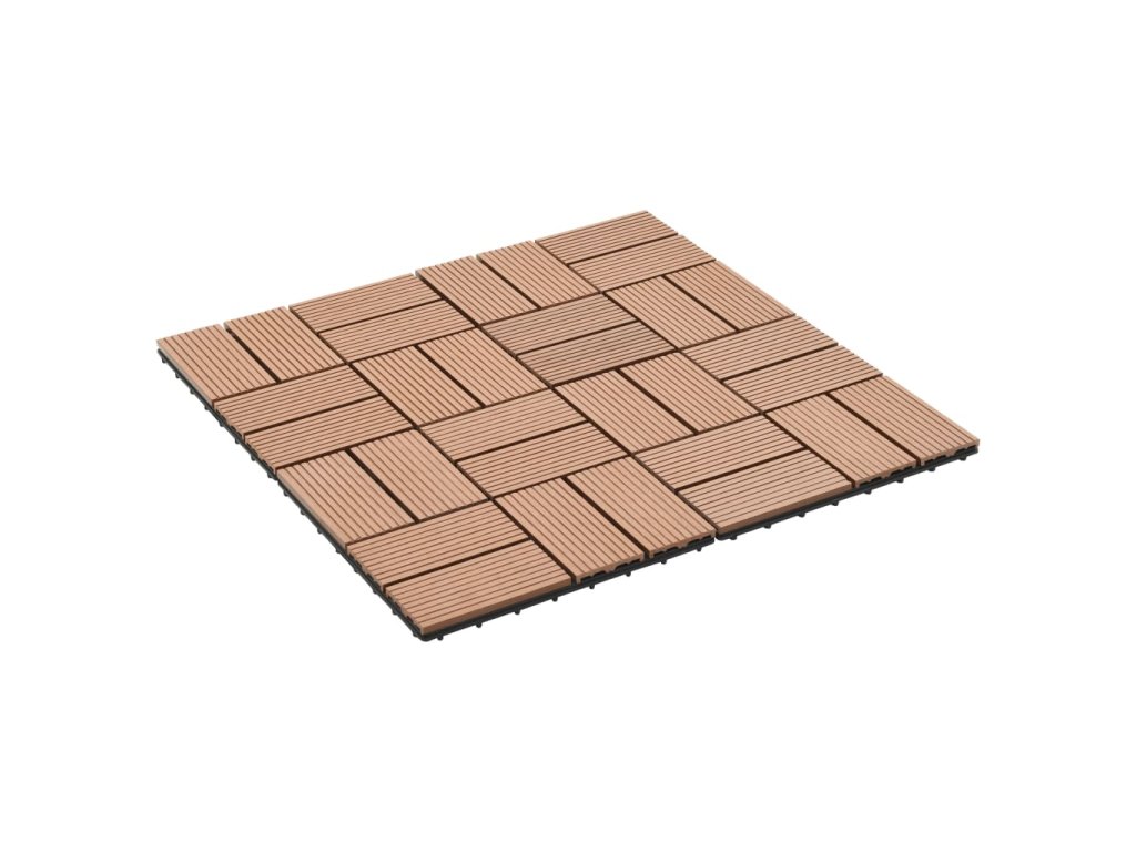 Táto sada pozostáva z 22 podlahových dosiek z WPC s rozmerom 30 x 30 cm a celkovo pokrýva plochu 2 metrov štvorcových. Je ako stvorená na terasy, balkóny, do kúpeľní alebo k bazénu či vírivke.