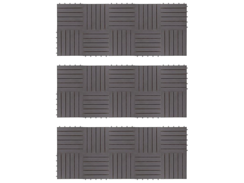 Táto sada 30 krytín z masívneho dreva je ideálna na skrášlenie rôznych povrchov alebo chodníkov na vašej záhrade, terase, balkóne, či akejkoľvek inej miestnosti. Vzor je nielen dekoratívny, no taktiež zaisťuje, že sa povrch nekĺže.