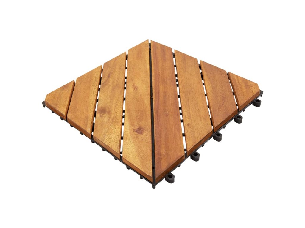 Podlahové drevené dlaždice sa dajú jednoducho pospájať a sú skvelým spôsobom, ako si ozdobiť terasu či záhradný chodníček.